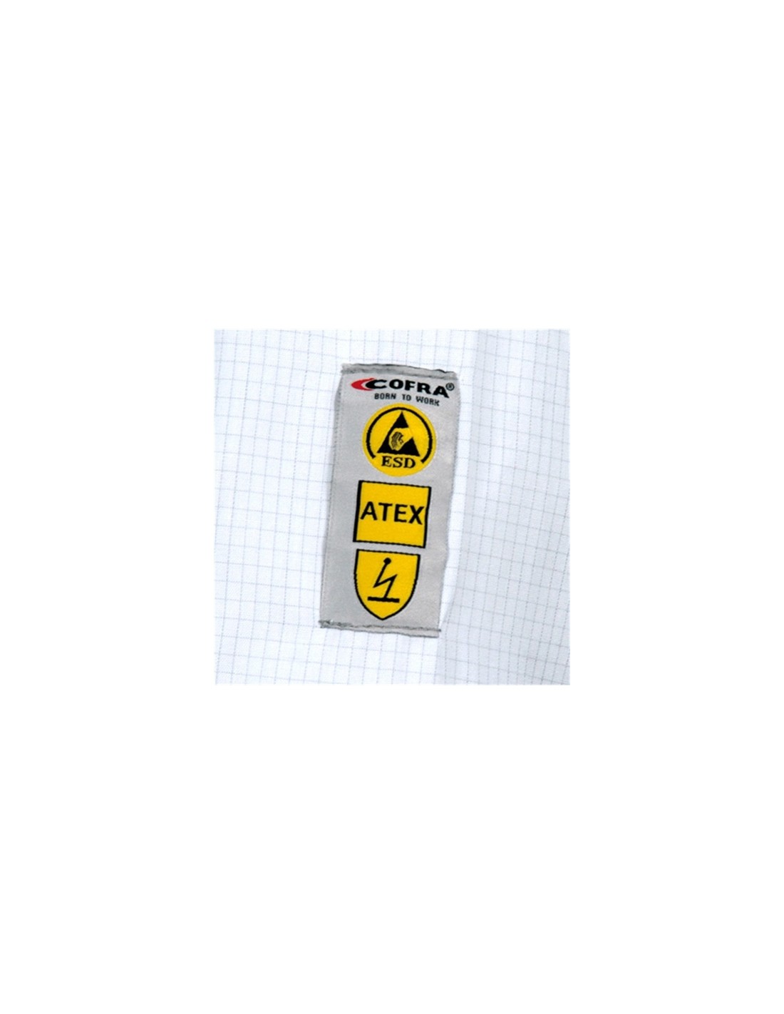 Il camice Electrostatic di Cofra è studiato per assicurare la massima sicurezza in ambienti di produzione dove si manipolano dispositivi elettronici (ambienti EPA) e in ambienti ATEX per proteggere da scariche che possano innescare incendi o esplosioni.