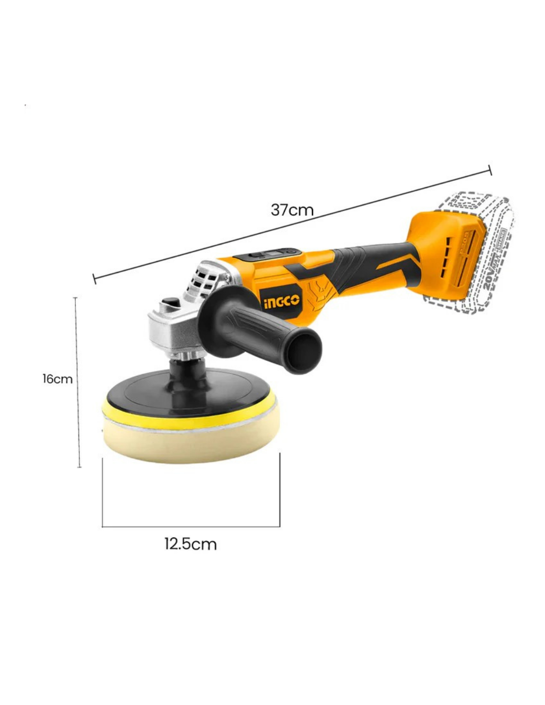 • 1 Lucidatrice a Batteria INGCO 20V (batteria e caricabatterie non inclusi).