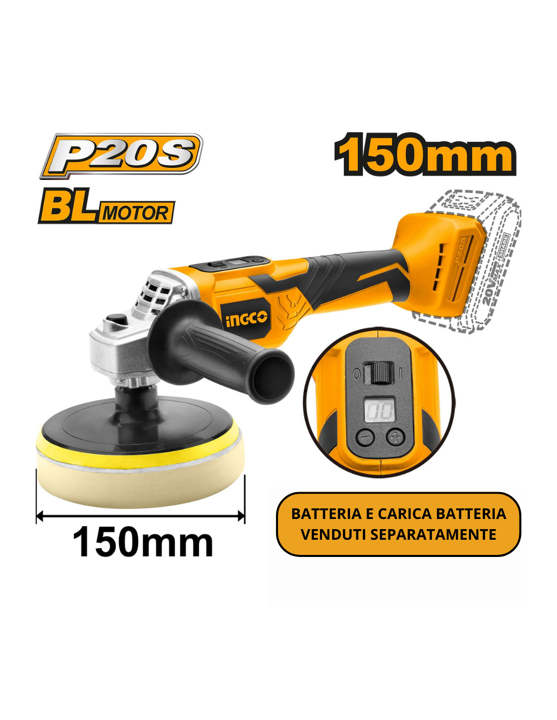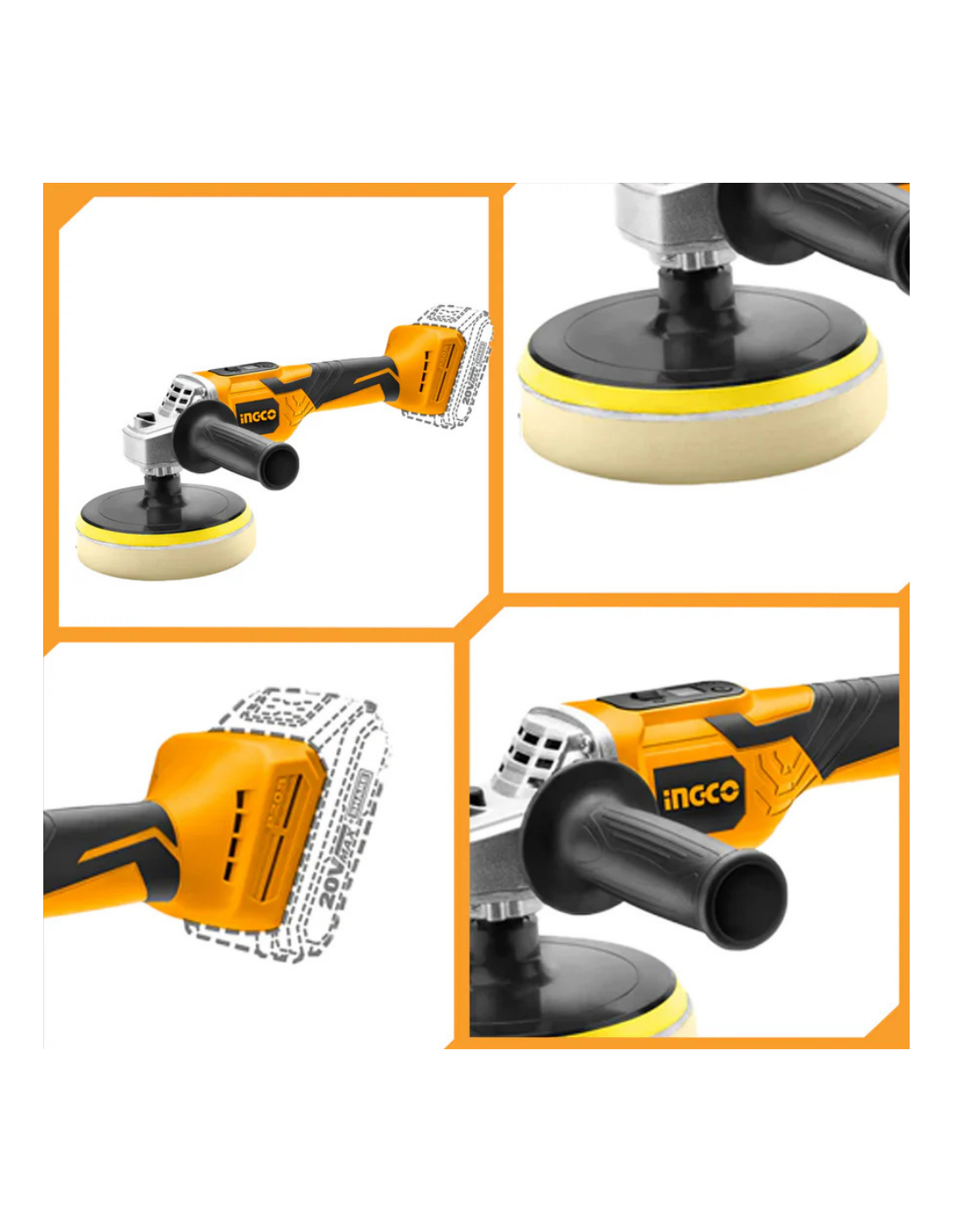 • CONFEZIONE: 1 lucidatrice a batteria INGCO, compatibile con tutte le batterie 20V INGCO, facile da usare e trasportare.