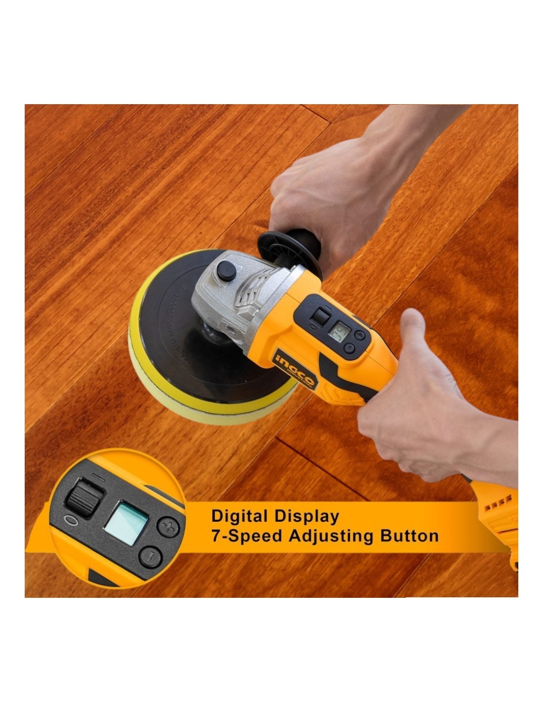 La lucidatrice a batteria INGCO grazie al suo design leggero e all'alimentazione senza fili è un'ottima scelta per risultati di lucidatura eccellenti.