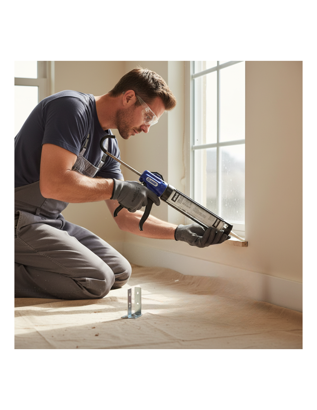 - Ancoraggi chimici: Applicazione sicura di tasselli chimici in cartucce tipo silicone per fissaggi strutturali in edilizia civile e industriale.