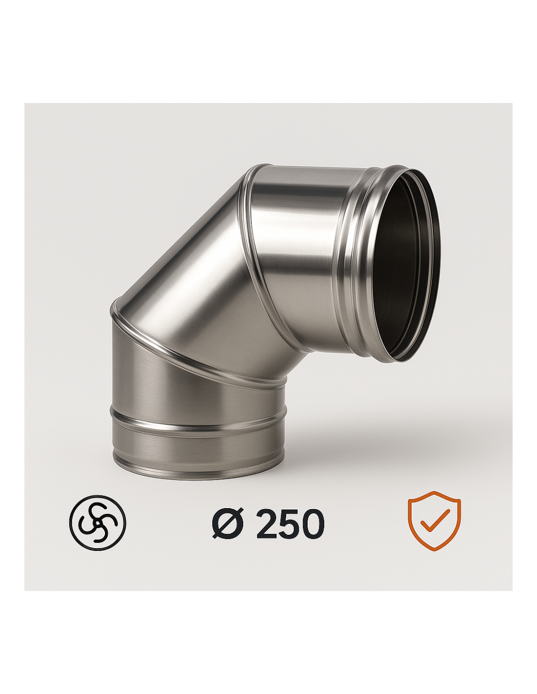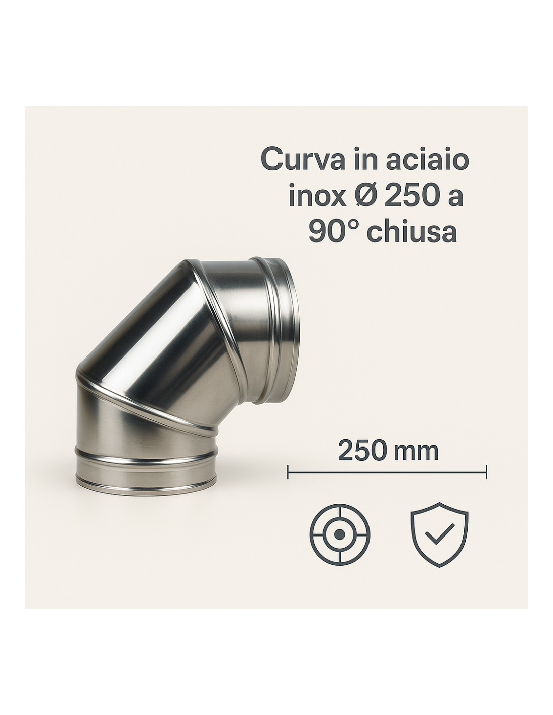• CARATTERISTICHE: curva chiusa Ø 250 in acciaio inox AISI 304 sp. 0,5 mm, finitura BA lucida, resistente e durevole per impianti di scarico fumi