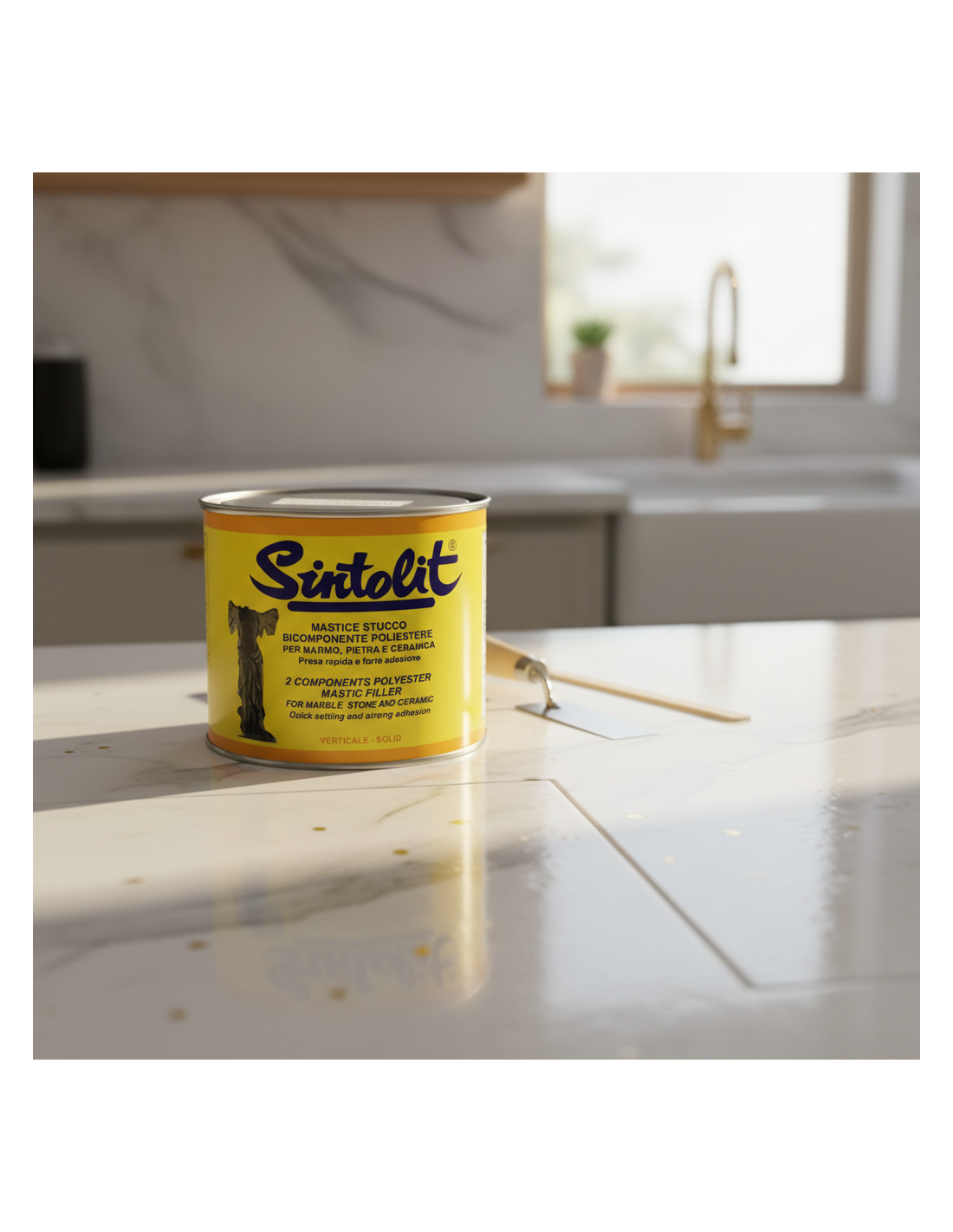 - Piani cucina e superfici esposte: Ottimo per piccole riparazioni su top in marmo sottoposti a stress termico o meccanico.
