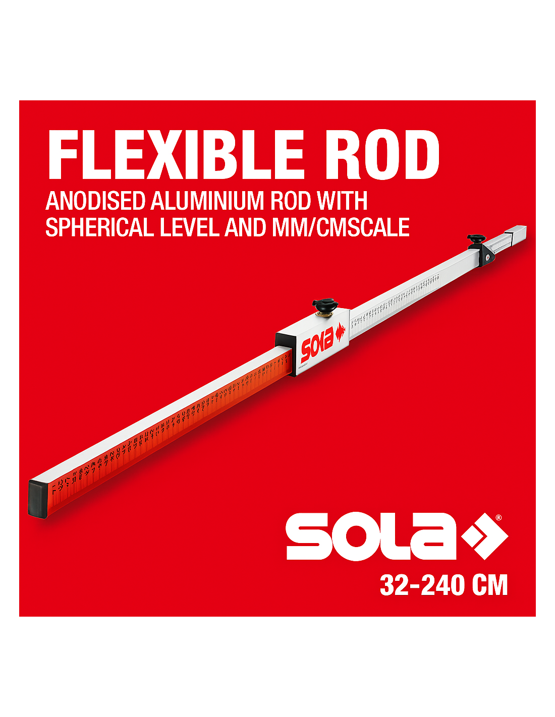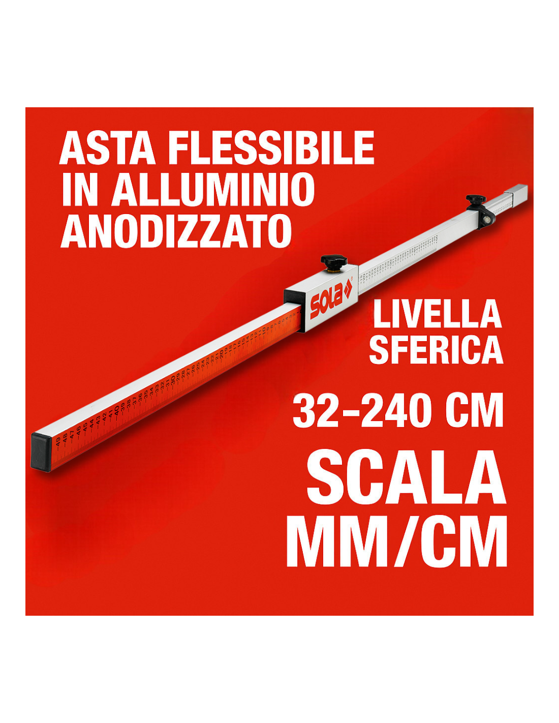 - CARATTERISTICHE: asta telescopica in alluminio anodizzato resistente e leggero, estensione da 32 a 240 cm, scala mm/cm stampata, finitura argento/rosso professionale