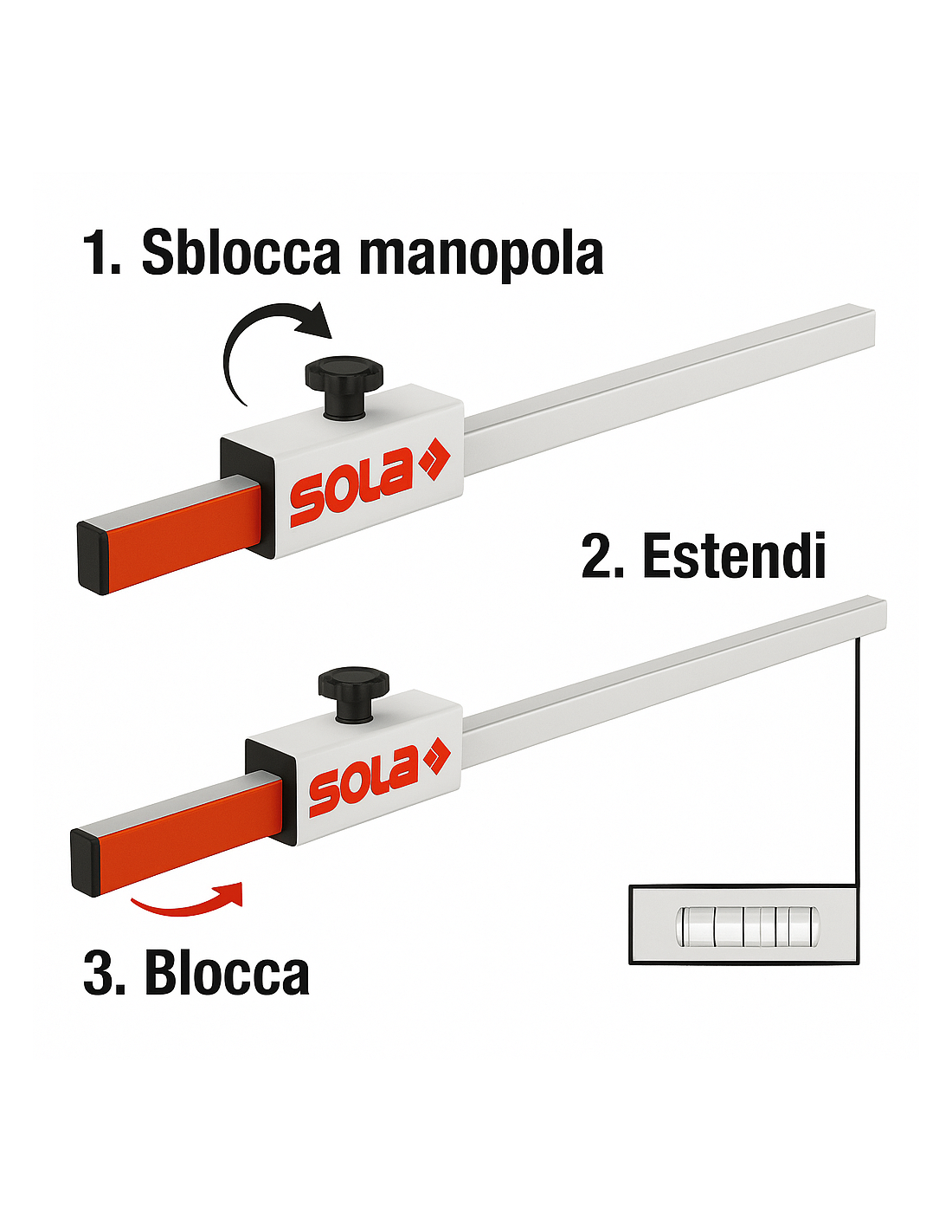 - Riduce i tempi di misurazione grazie alla scala visibile e alla livella integrata