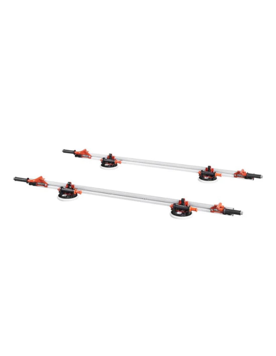 • CARATTERISTICHE: struttura in alluminio a lunghezza fissa, 4 ventose RV175 traslabili con gomma antimacchia, vuotometro integrato, peso contenuto di 10,4 kg