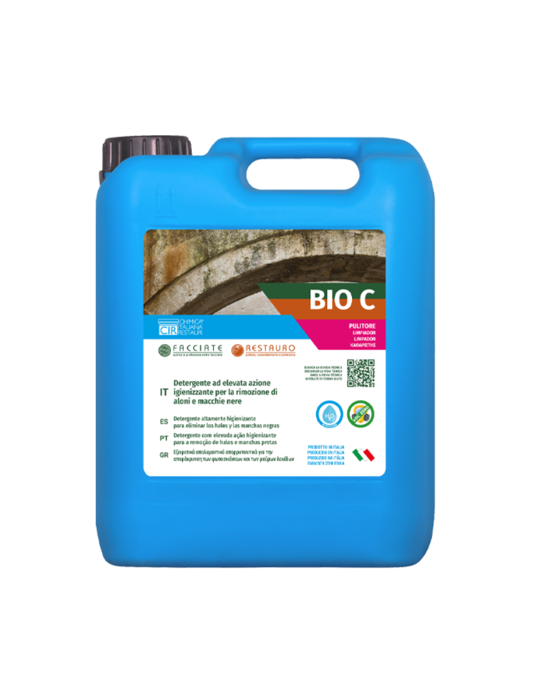 - BIO C è un detergente neutro, ideale per l'uso su pietre naturali di qualsiasi tipo e manufatti storici. La sua composizione delicata ma efficace permette di trattare anche le superfici più delicate senza causare danni.