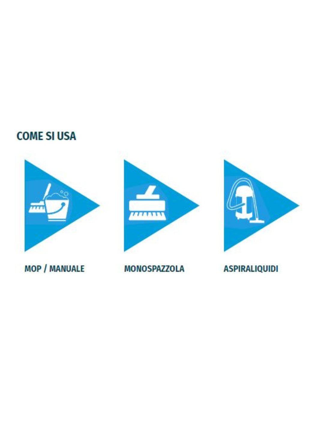 - Il detergente si diluisce semplicemente in acqua e viene applicato con un mop tradizionale oppure con una monospazzola abbinata a un aspiraliquidi per una pulizia ancora più approfondita.