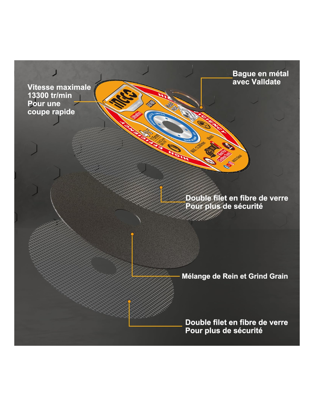 - Ridotto consumo del disco grazie alla speciale miscela abrasiva