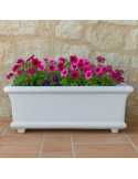 CARATTERISTICHE: realizzata in cemento bianco resistente con finitura geometrica a rilievo, misure L.101 x P.30 x H.34 cm, ideale per l'uso esterno