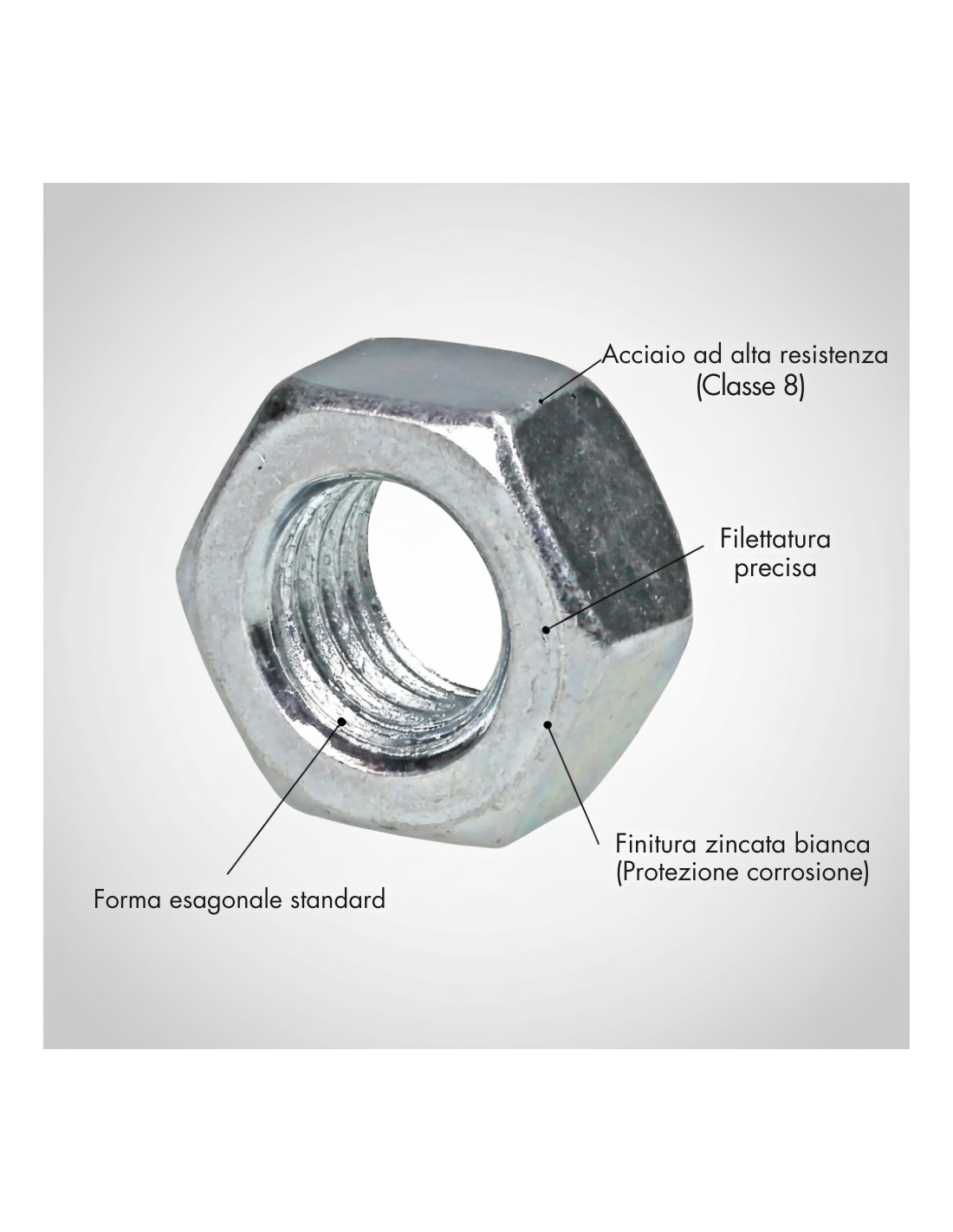 Dado esagonale zincato bianco classe 8 panoramica tecnica e vantaggi