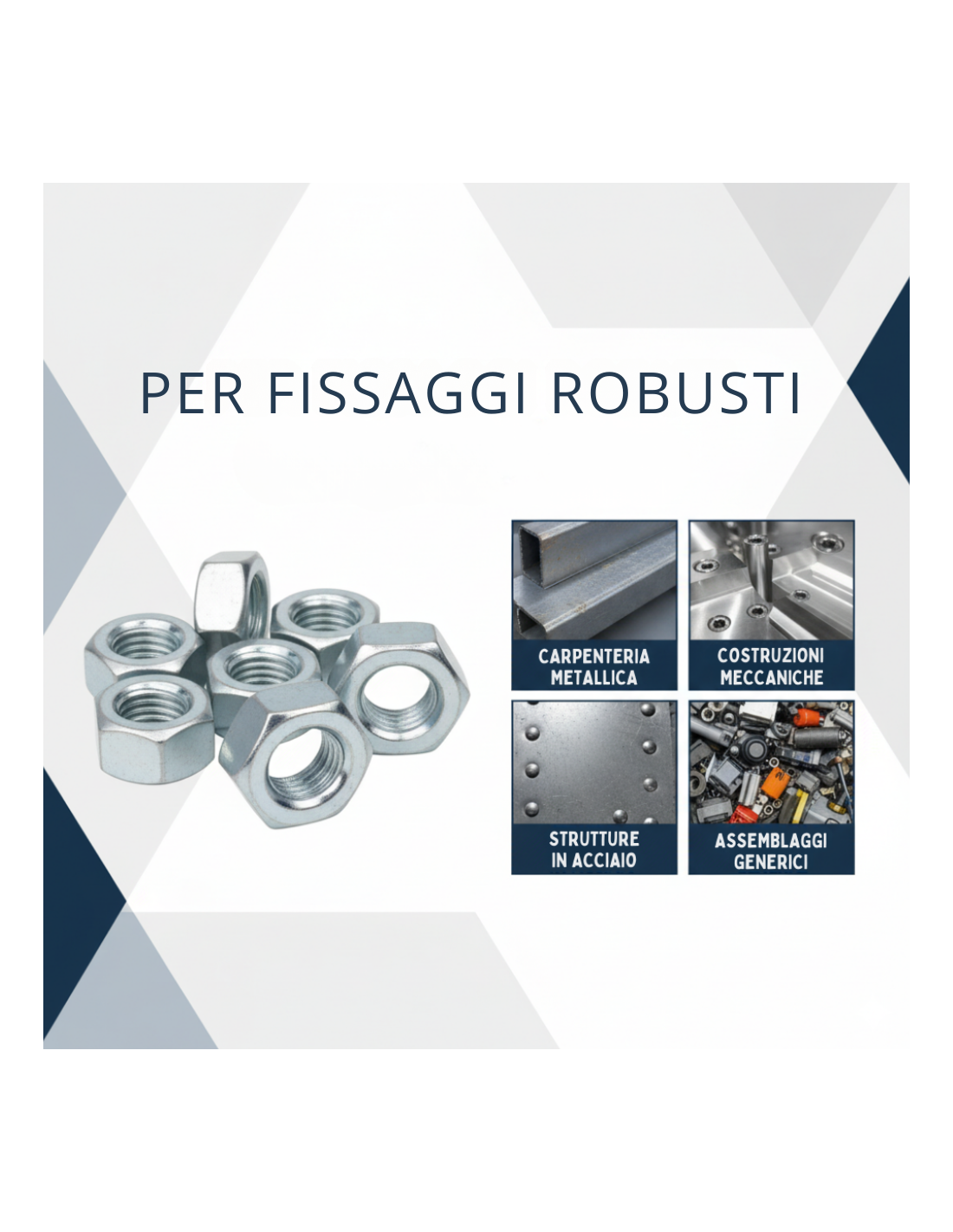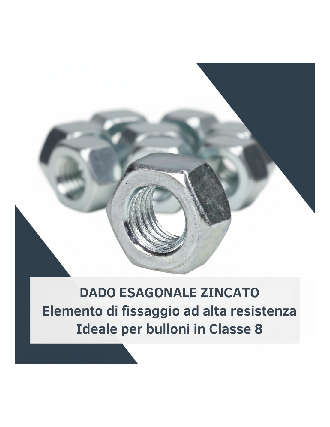 Dado esagonale zincato bianco classe 8 per applicazioni meccaniche e fai da te
