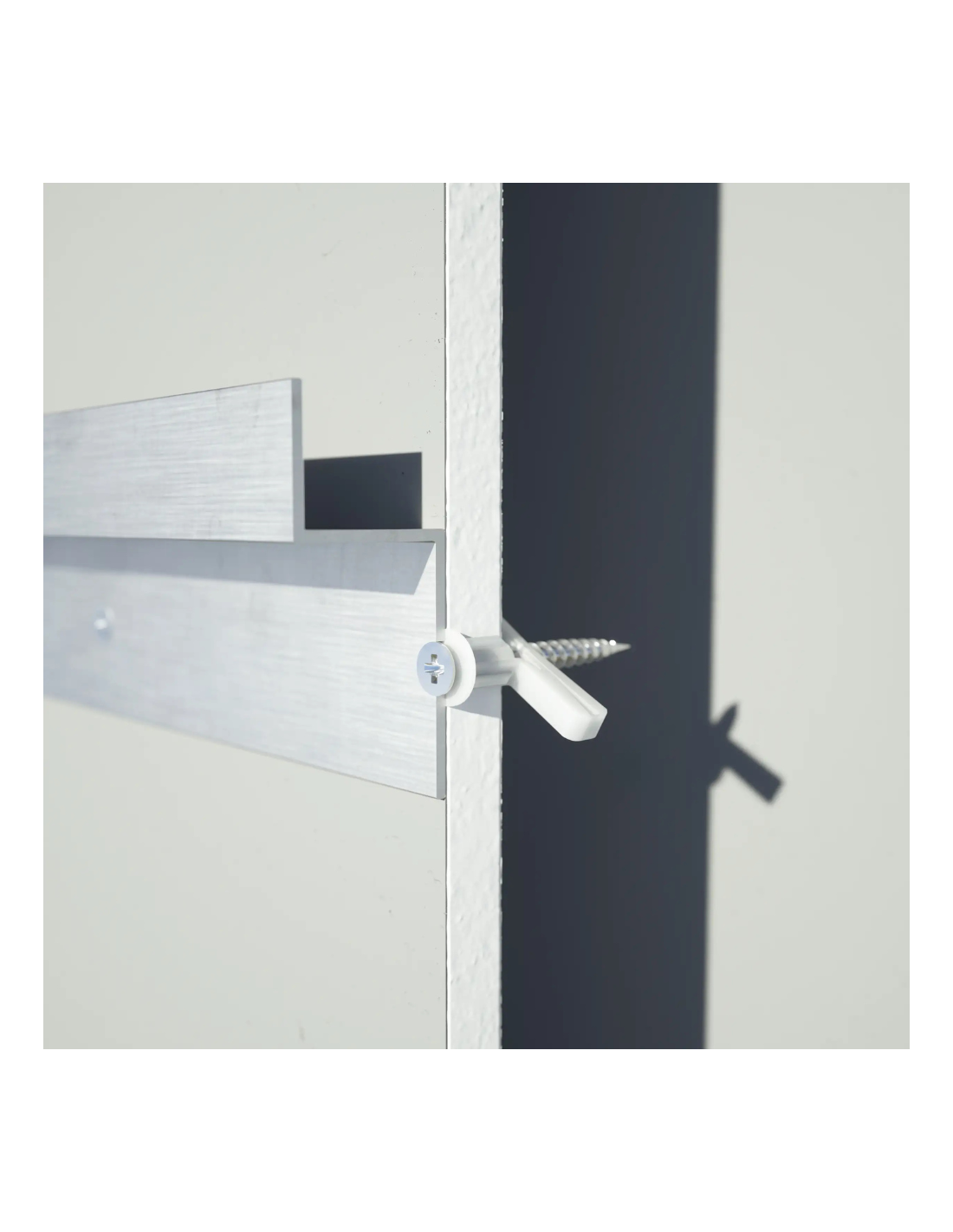 - Installazione intuitiva: il processo di montaggio è semplice e non richiede strumenti complessi. Basta praticare un foro, pulirlo da polveri e inserire il tassello comprimendo le alette.