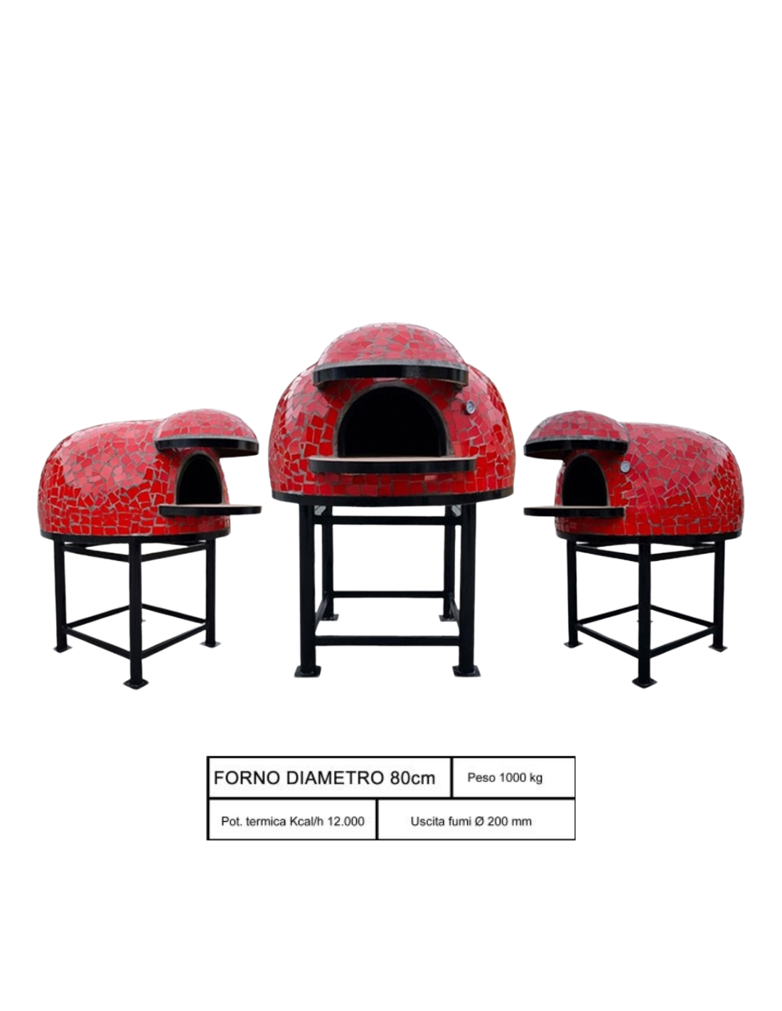 - Diametro interno forno: 80 cm – capacità di cottura fino a 2-3 pizze contemporaneamente.