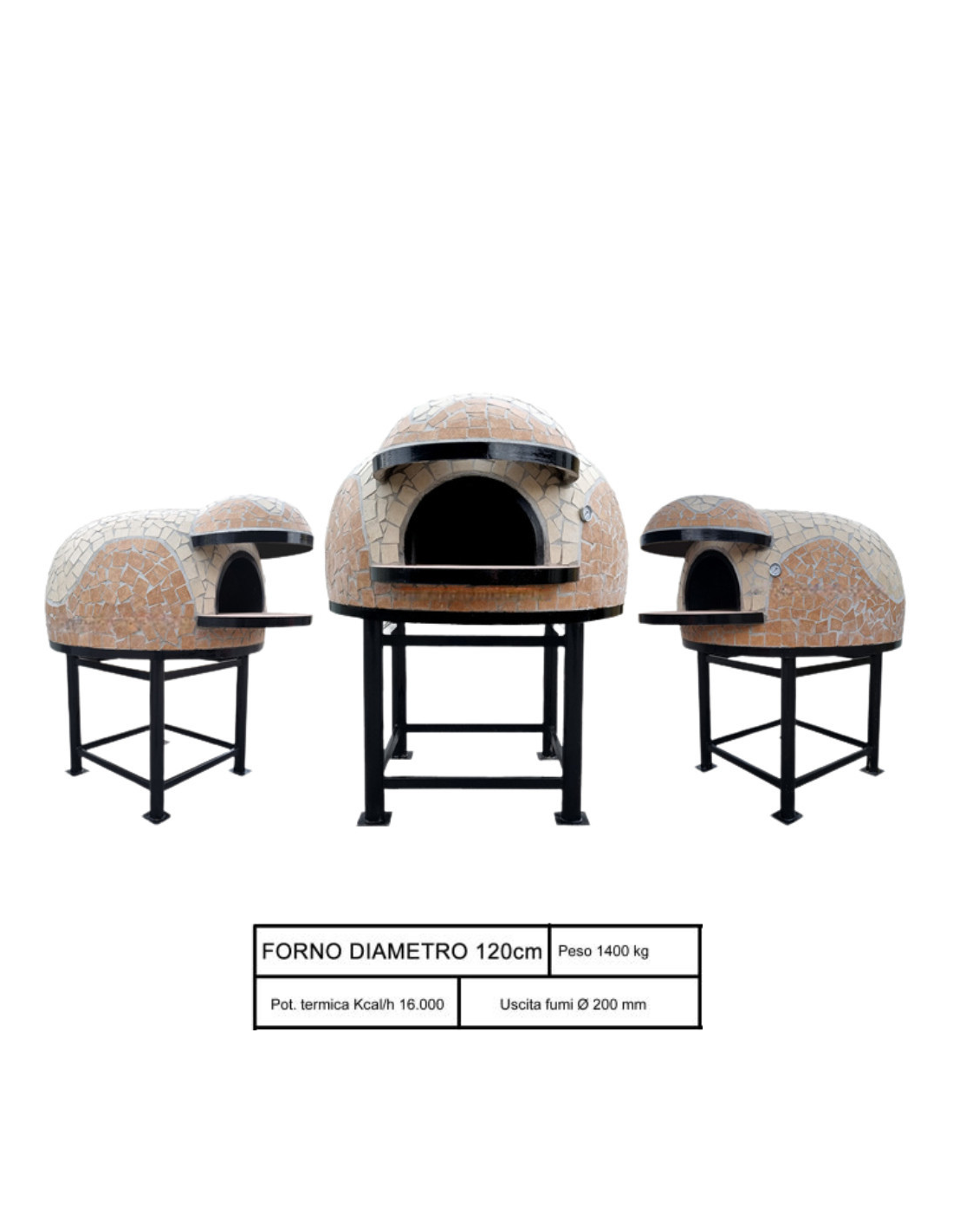 - Diametro interno forno: 120 cm – capacità di cottura fino a 5 pizze contemporaneamente.