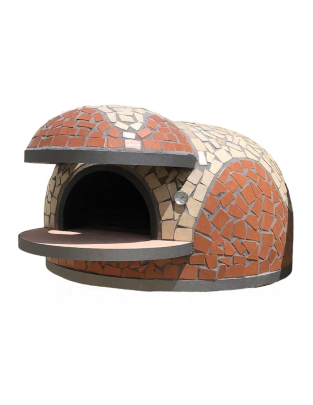 - CARATTERISTICHE: forno artigianale con rivestimento in mosaico cotto-beige, design elegante e struttura robusta per un’ottima ritenzione del calore.