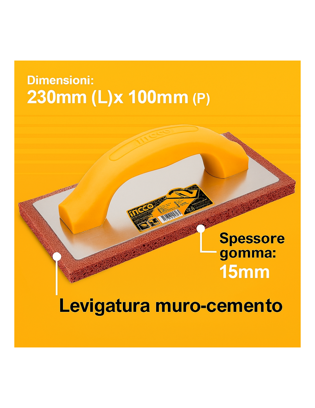 Il frattone in gomma 230x100 mm di Ingco è uno strumento versatile progettato per una vasta gamma di applicazioni, dalla levigatura di superfici in muratura e cemento alla pulizia di pavimenti e pareti.