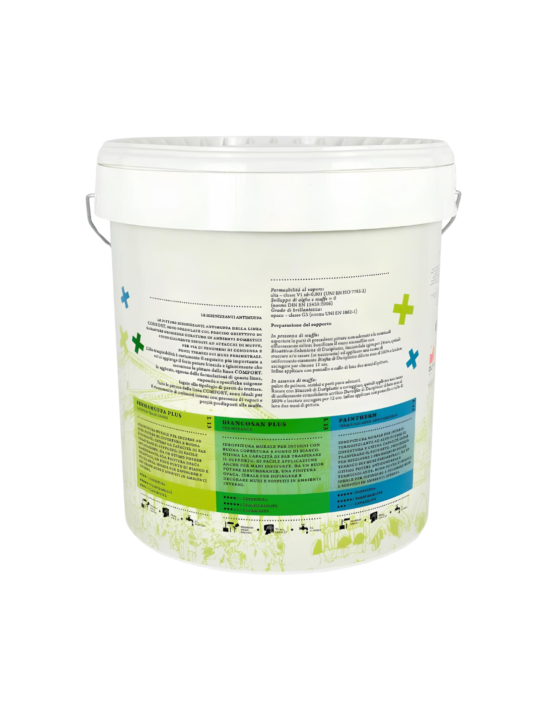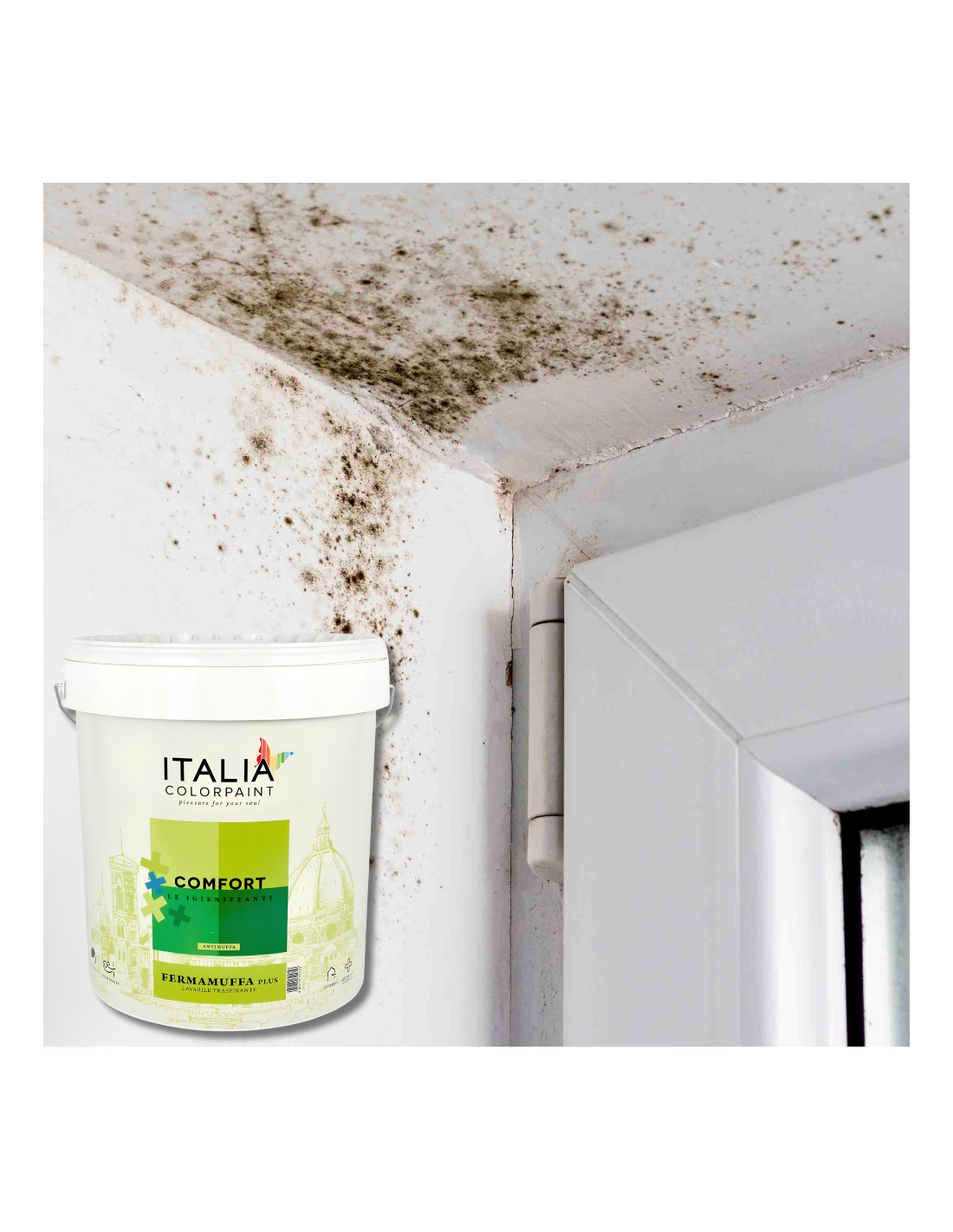 - Le pitture igienizzanti antimuffa della linea Comfort, sono formulate col preciso obiettivo di garantire benessere duraturo in ambienti domestici potenzialmente esposti ad attacchi di muffe, per via di fenomeni di condensa e ponti termici sui muri perimetrali.