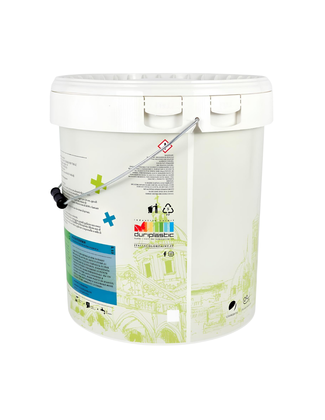 - CONFEZIONE: secchi in plastica da 2.5 L, 4 L e 13 L con manico resistente e tappo ermetico; etichetta completa di indicazioni tecniche e resa per m²