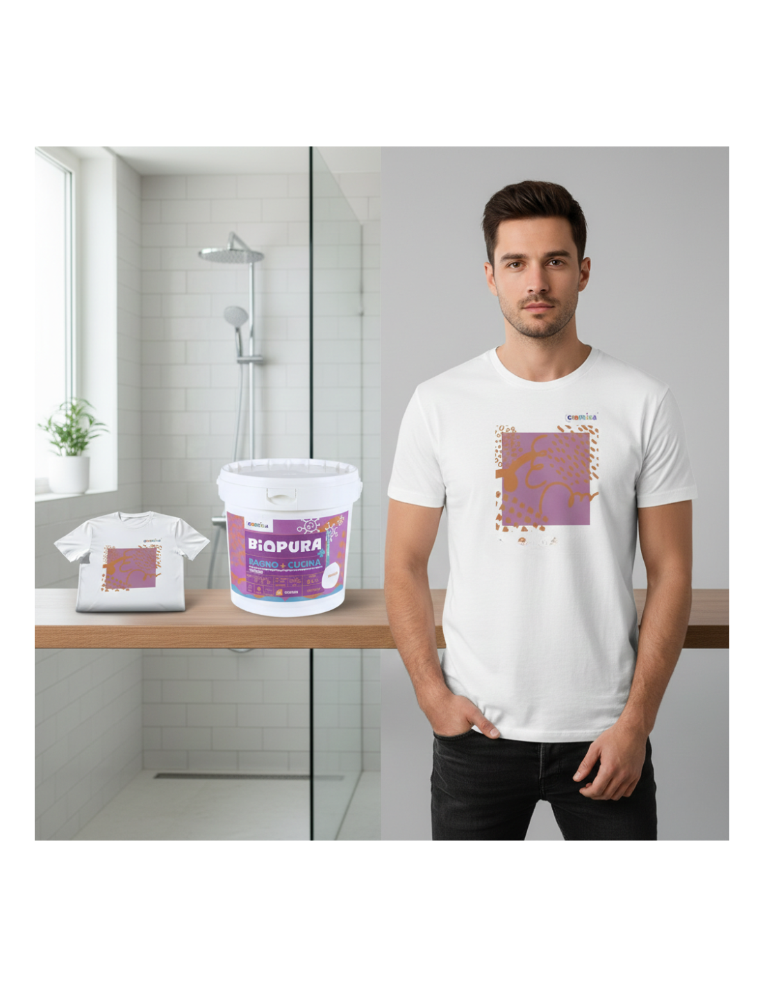Kit Pittura Antimuffa Traspirante Interni Bagno Cucina 5 L E T-Shirt Soft Chaos