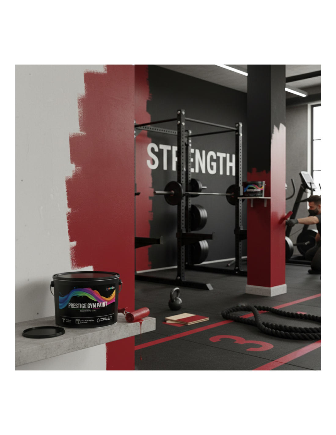 - Dove posso applicare questa pittura? Può essere utilizzata su tutte le pareti interne nuove o già verniciate della palestra. È perfetta come accento cromatico nelle zone pesi oppure nelle aree funzionali dove si desidera trasmettere energia agli utenti attraverso il colore dominante della superficie muraria. Si consiglia comunque un uso bilanciato integrando sempre colori neutri negli spazi adiacenti.