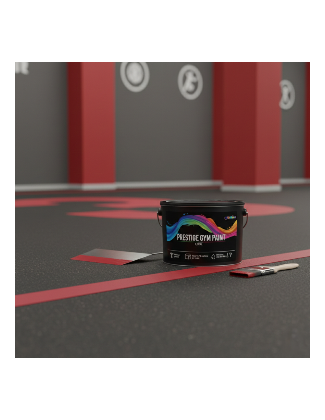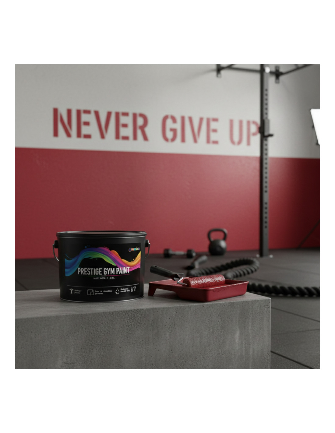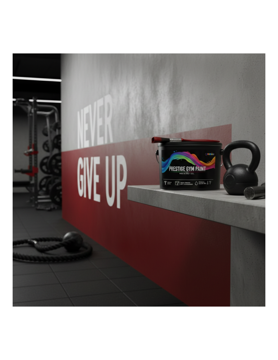 Uno dei punti di forza della Prestige Gym Paint è la viscosità tixotropica: questa caratteristica evita le colature durante l’applicazione anche su superfici verticali, garantendo una distribuzione uniforme del colore. La pittura si adatta perfettamente sia a rulli a pelo corto che a pennelli o sistemi a spruzzo. È fornita in pratici formati da 0,75 L e 2,5 L, ideali sia per piccole zone tematiche sia per ampie pareti di centri fitness o sale multiuso.