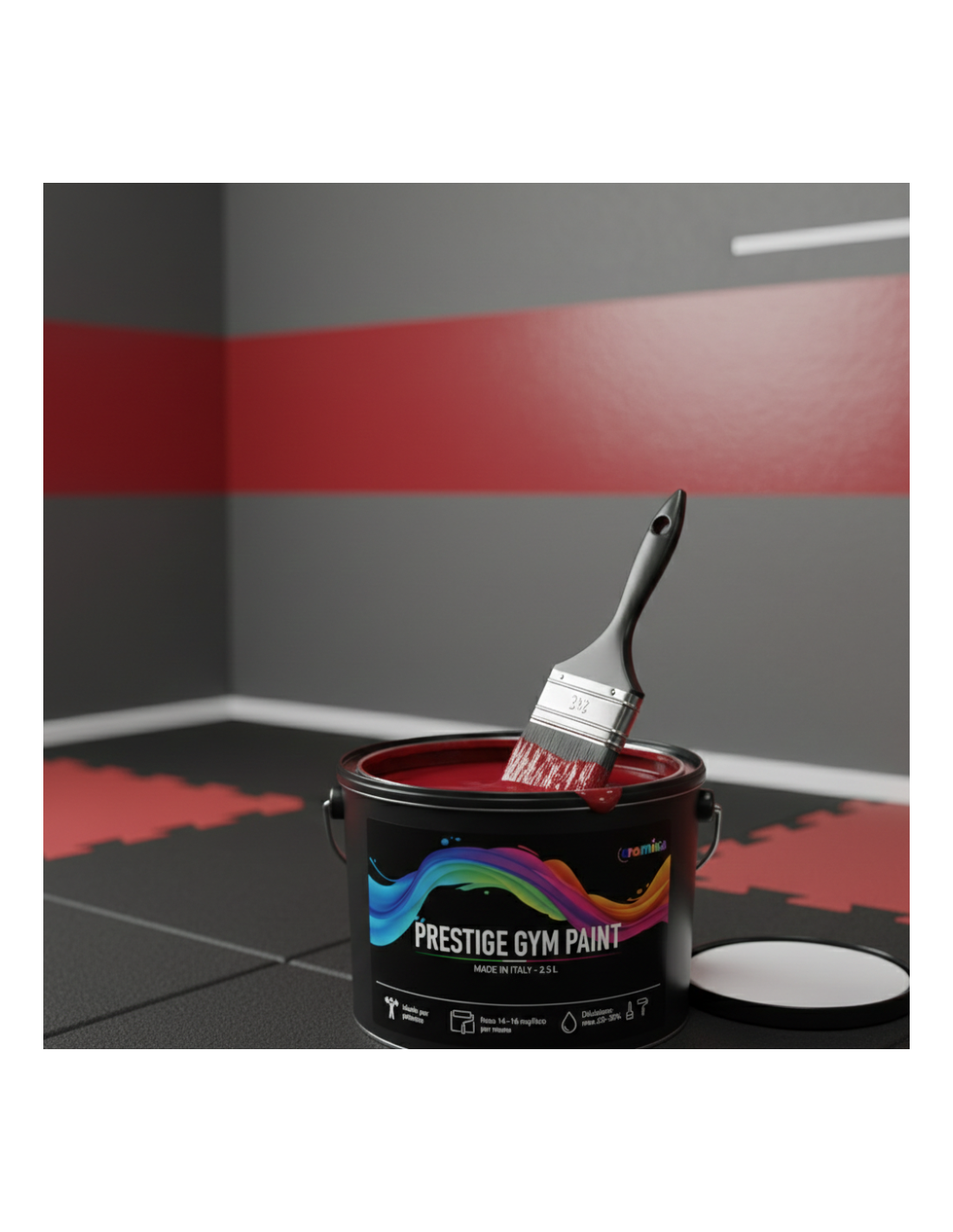 - E’ compatibile con altre pitture? Sì la Prestige Gym Paint rosso rubino è sovraverniciabile ed è compatibile con tutti i prodotti della Linea Biopura Cromika permettendo così ampie possibilità di personalizzazione dello spazio fitness secondo esigenze estetiche stagionali oppure funzionali nel tempo senza rischiare incompatibilità tra strati successivi di colore sulle superfici trattate precedentemente.