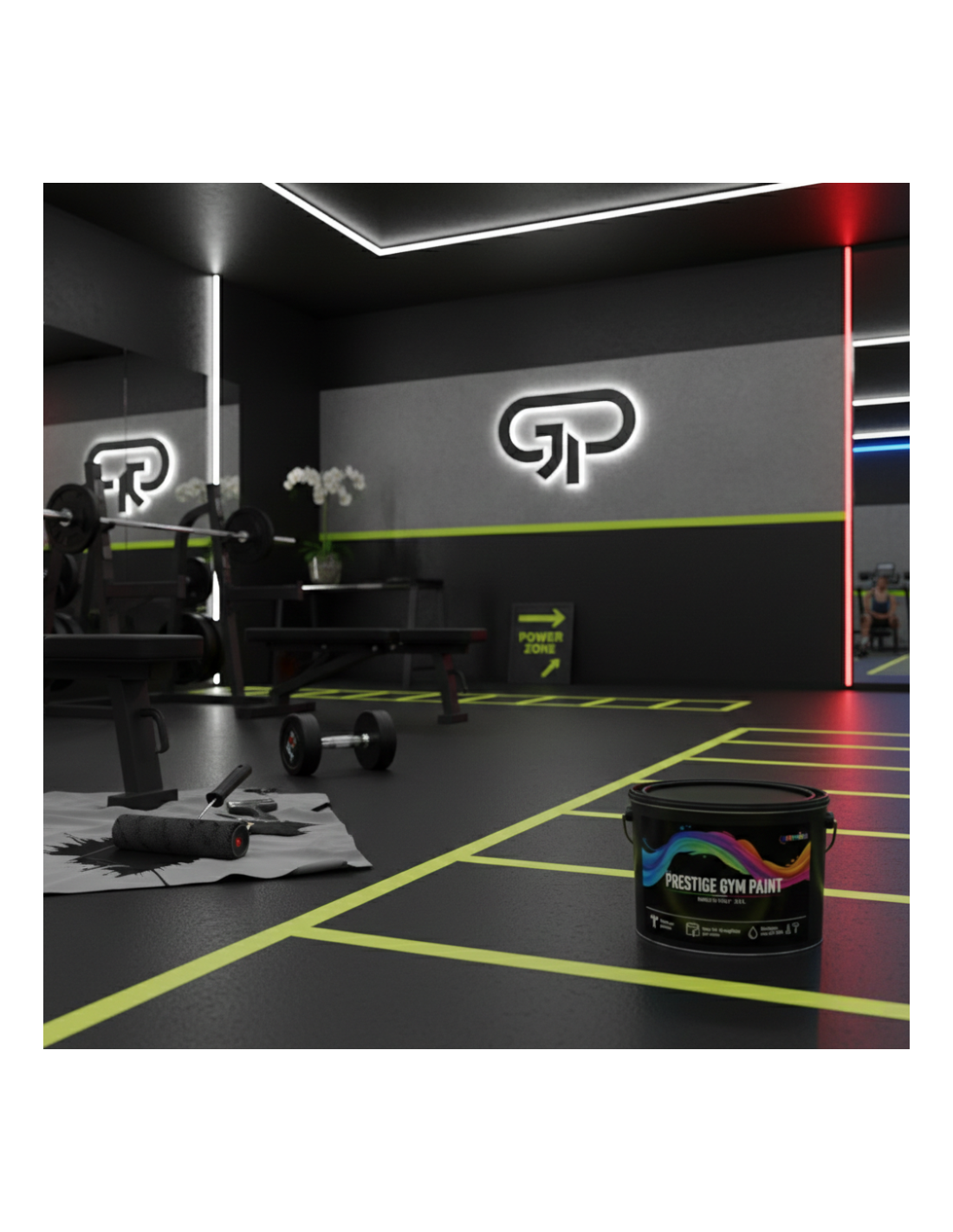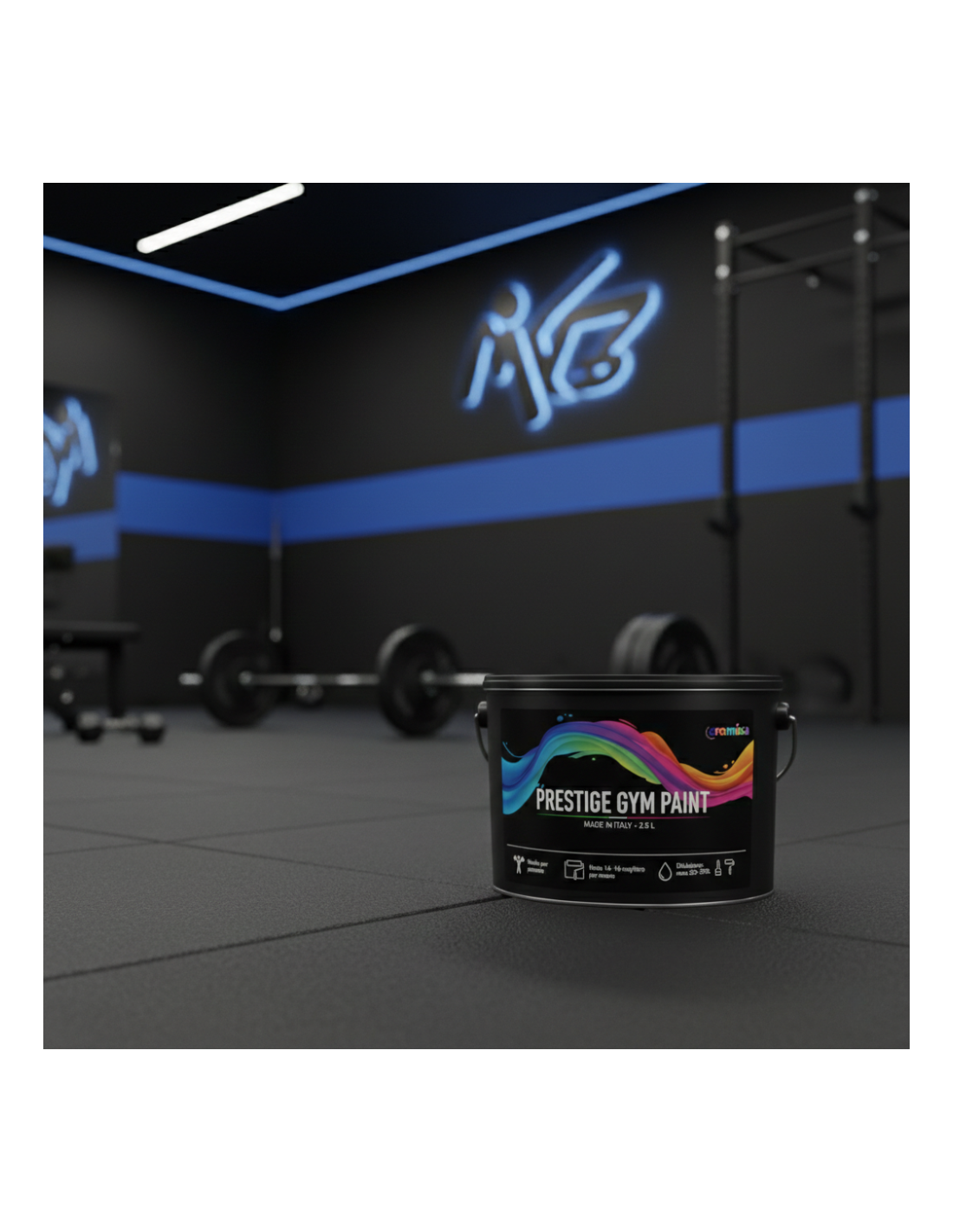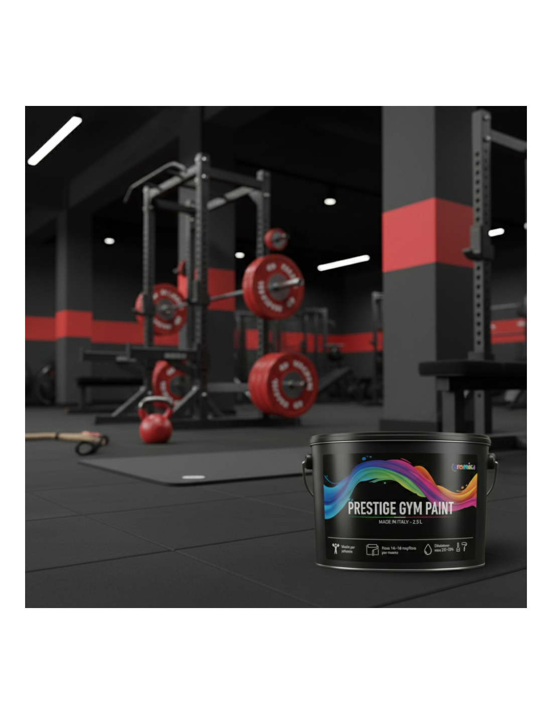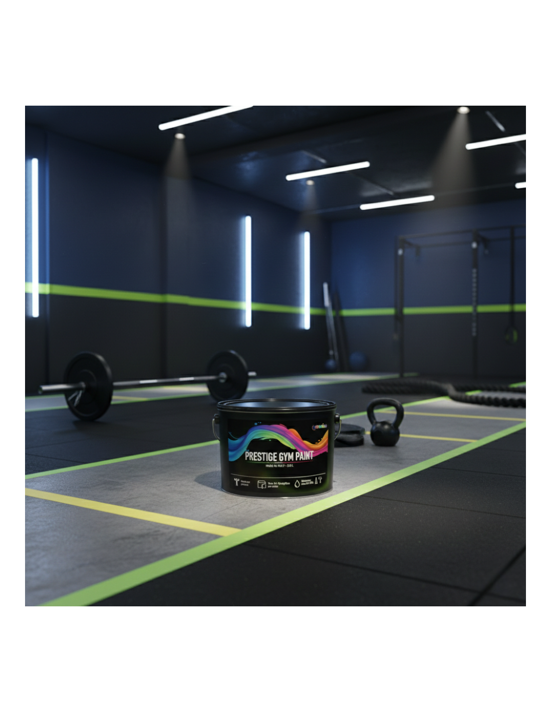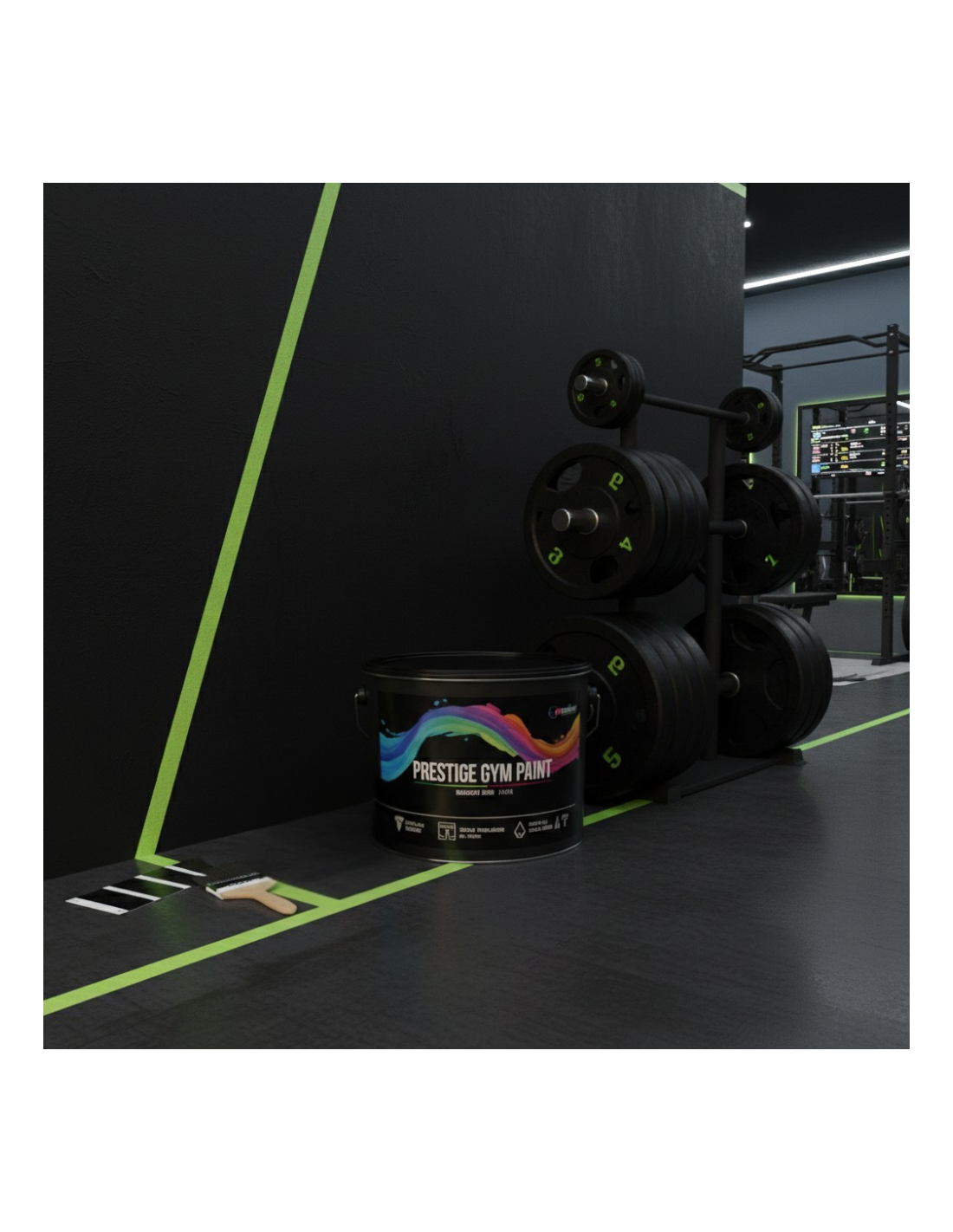 Prestige Gym Paint nero premium rappresenta una pittura murale innovativa, appositamente concepita per soddisfare le necessità di palestre, centri fitness e strutture sportive di alta qualità. Grazie alla sua formula super lavabile e altamente coprente, è perfetta per spazi con un intenso utilizzo, dove la pulizia e l'aspetto estetico sono fondamentali. La base acquosa unita a pigmenti selezionati conferisce una finitura nera profonda, omogenea e duratura, capace di esaltare lo stile contemporaneo delle strutture sportive. La sua consistenza tixotropica permette un'applicazione controllata senza colature, facilitando l'uso anche su superfici ampie e verticali. Disponibile in formati da 750 ml e 2,5 litri, questa pittura è ideale sia per dettagli decorativi che per la tinteggiatura completa di grandi aree.