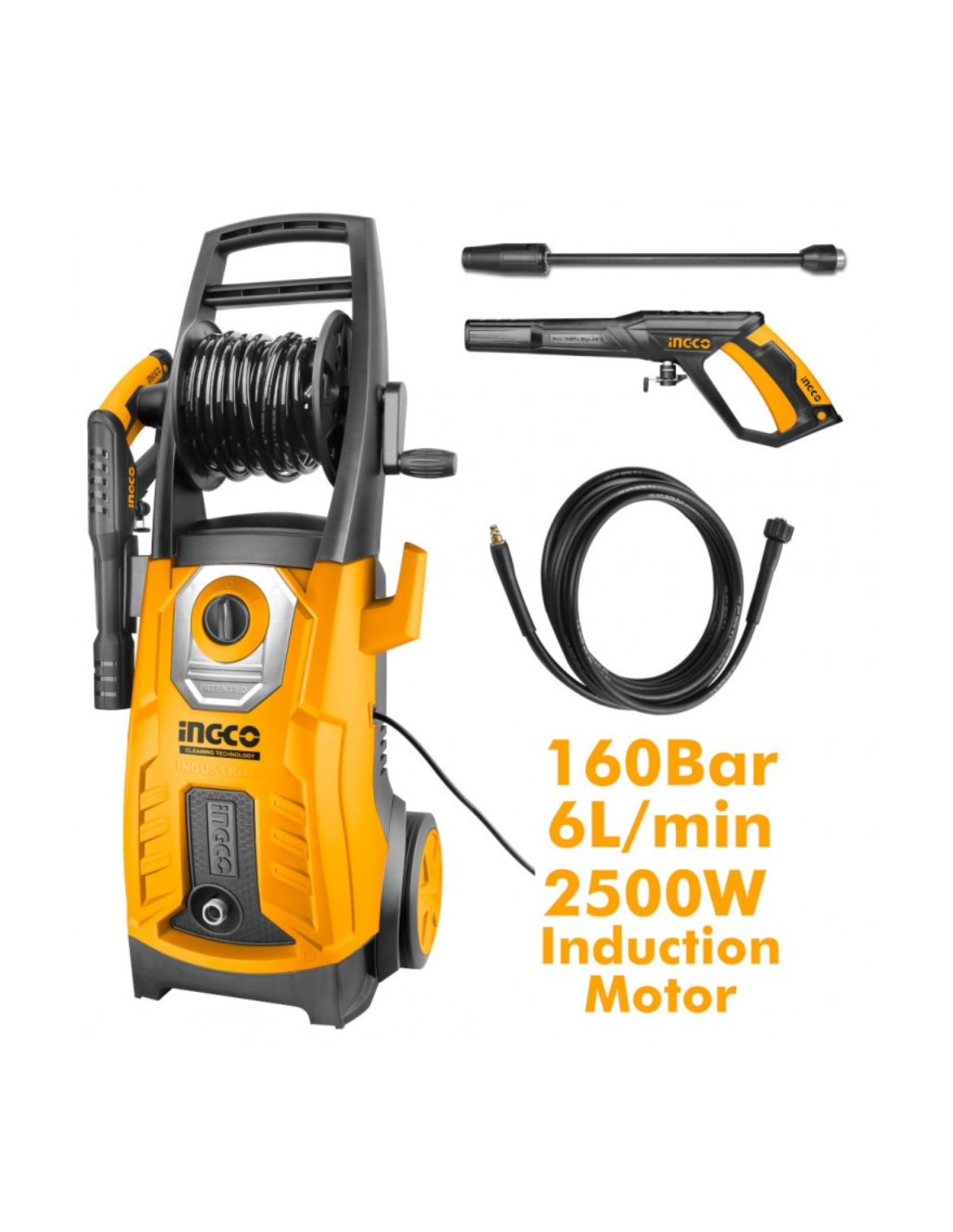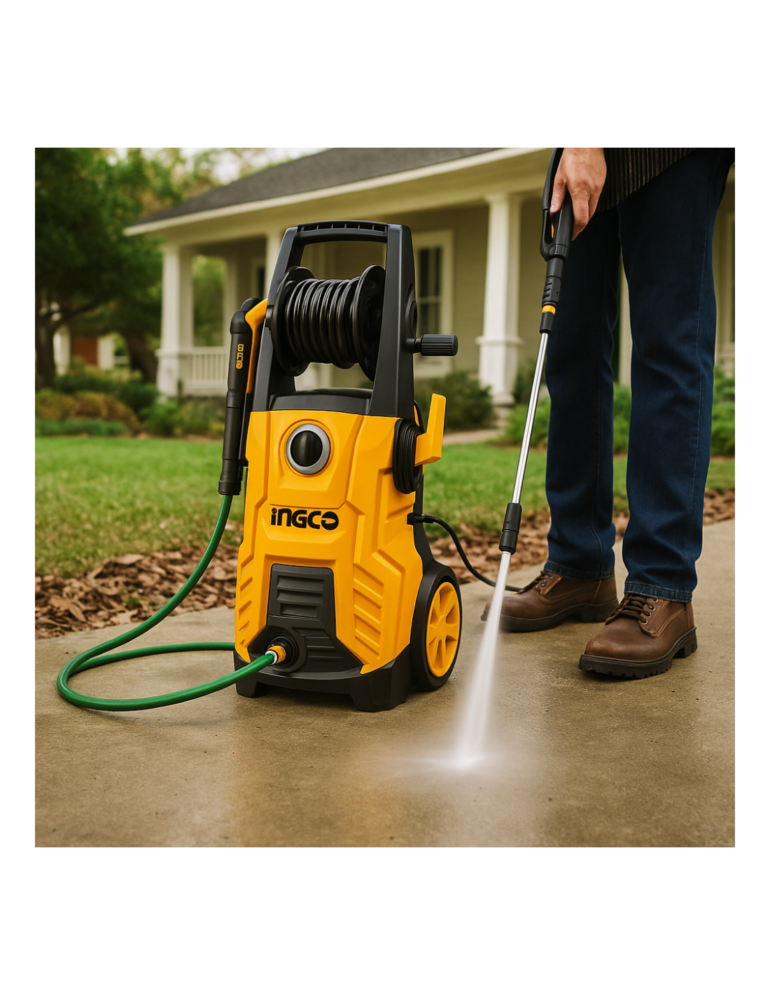 160 BAR con accessori firmata Ingco, lo strumento indispensabile per garantire una pulizia impeccabile e senza sforzo in ogni angolo della vostra casa, del vostro giardino o del vostro veicolo.