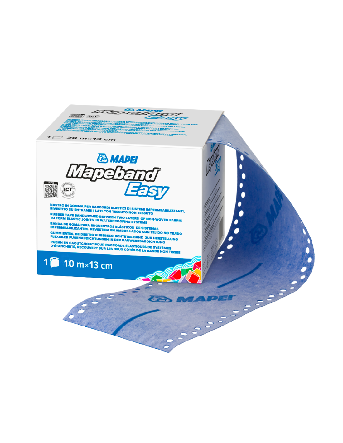 • Compatibilità universale: Mapeband Easy si integra perfettamente con diversi sistemi impermeabilizzanti Mapei (Mapelastic, Monolastic, Mapegum WPS, AquaFlex Roof, Mapeguard UM35), garantendo flessibilità progettuale.