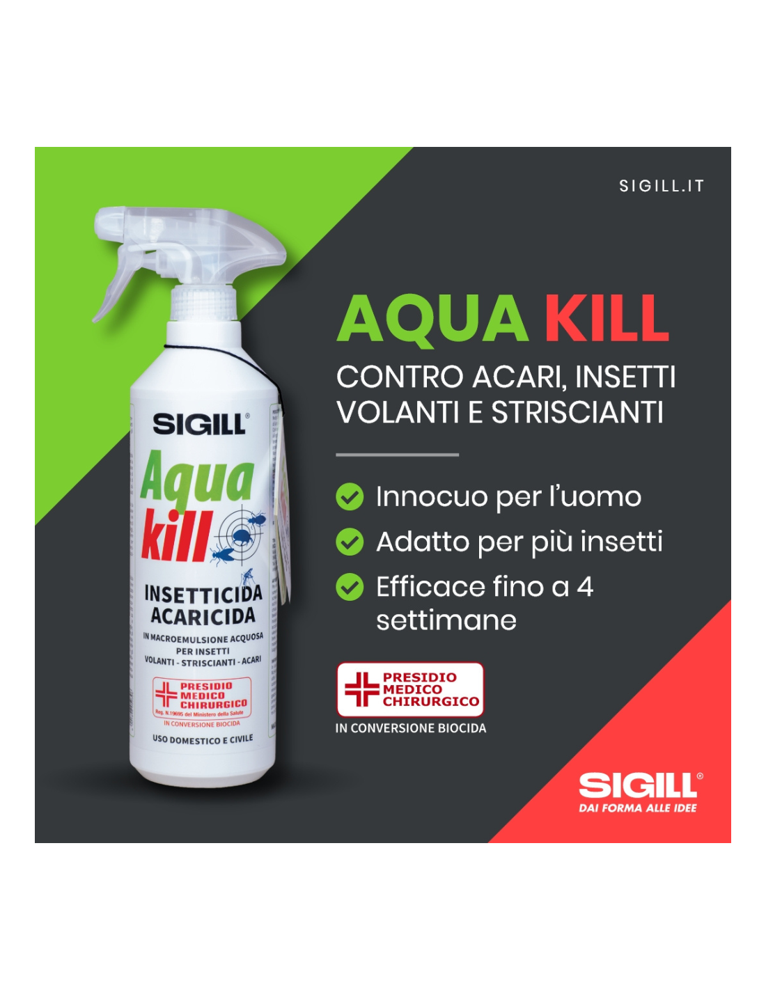 Acqua Kill Sigill è un insetticida acaricida spray pronto all’uso