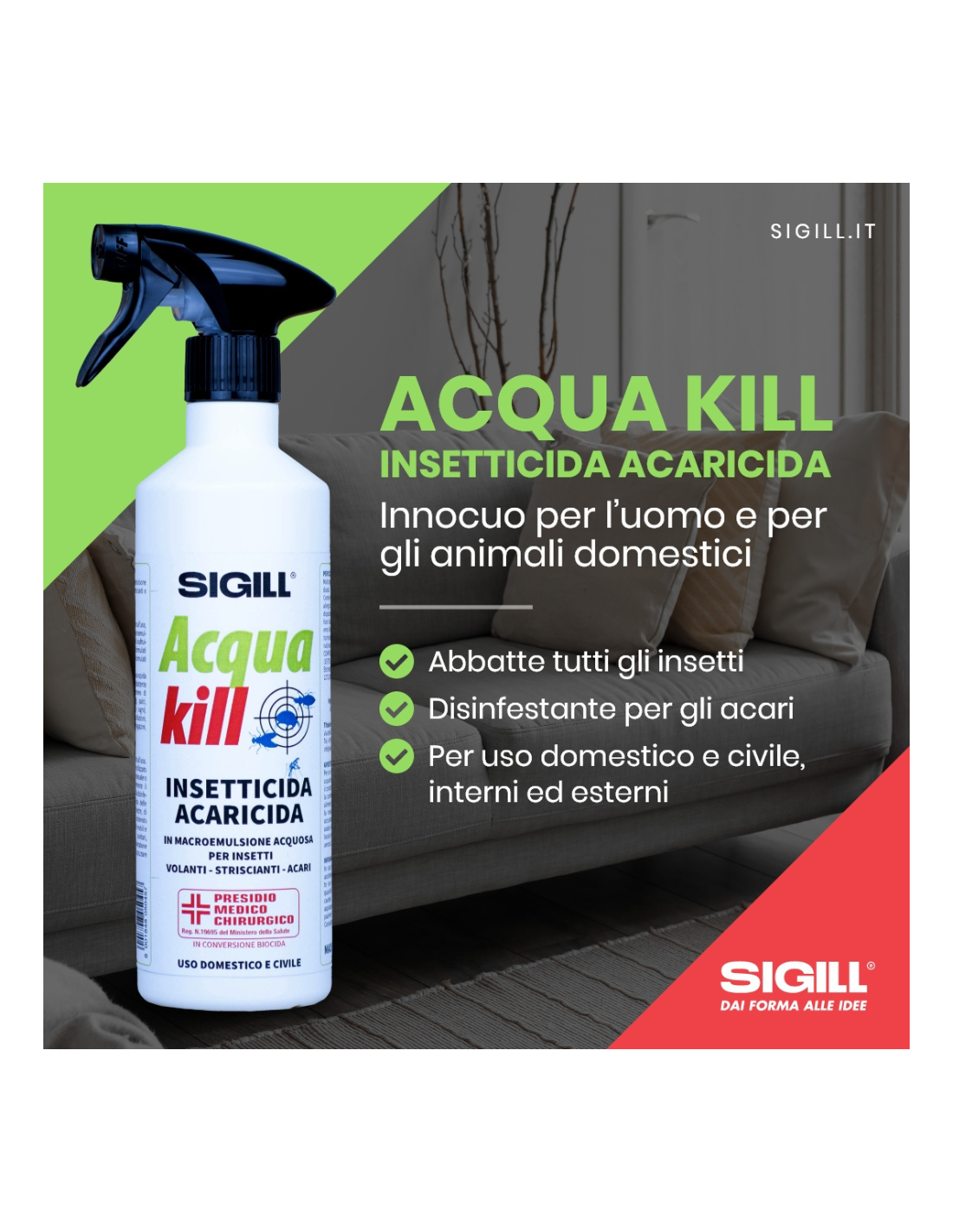 Acqua Kill Sigill è un insetticida acaricida spray pronto all’uso