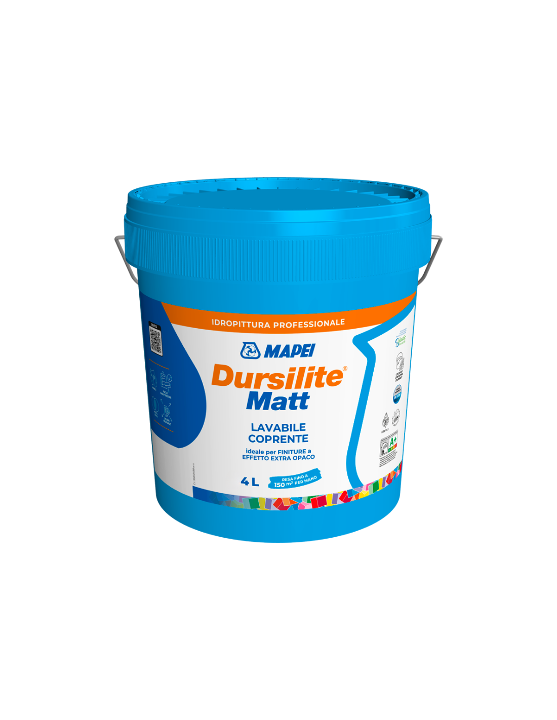 La pittura si applica facilmente con pennello, rullo o spruzzo, garantendo un ciclo di lavoro rapido e sicuro. È idonea sia per nuove realizzazioni che per interventi di rinnovo su pareti interne, offrendo sempre risultati uniformi anche su superfici difficili o soggette a precedenti pitturazioni scure. Dursilite Matt è conforme alla norma EN 13300 e si colloca in classe 2 sia per il potere coprente sia per la resistenza alla spazzolatura a umido. Queste certificazioni attestano l’idoneità del prodotto in ambienti dove la qualità della finitura e la durata nel tempo sono criteri essenziali.