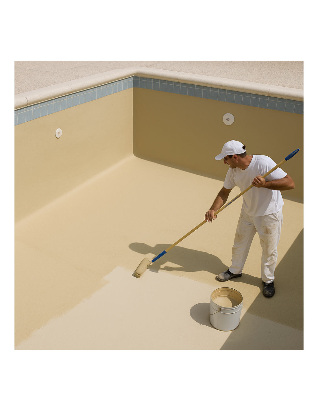 • RISULTATO: superficie continua, uniforme, elastica e idrorepellente con finitura opaca color sabbia, durevole e resistente in piscine o vasche