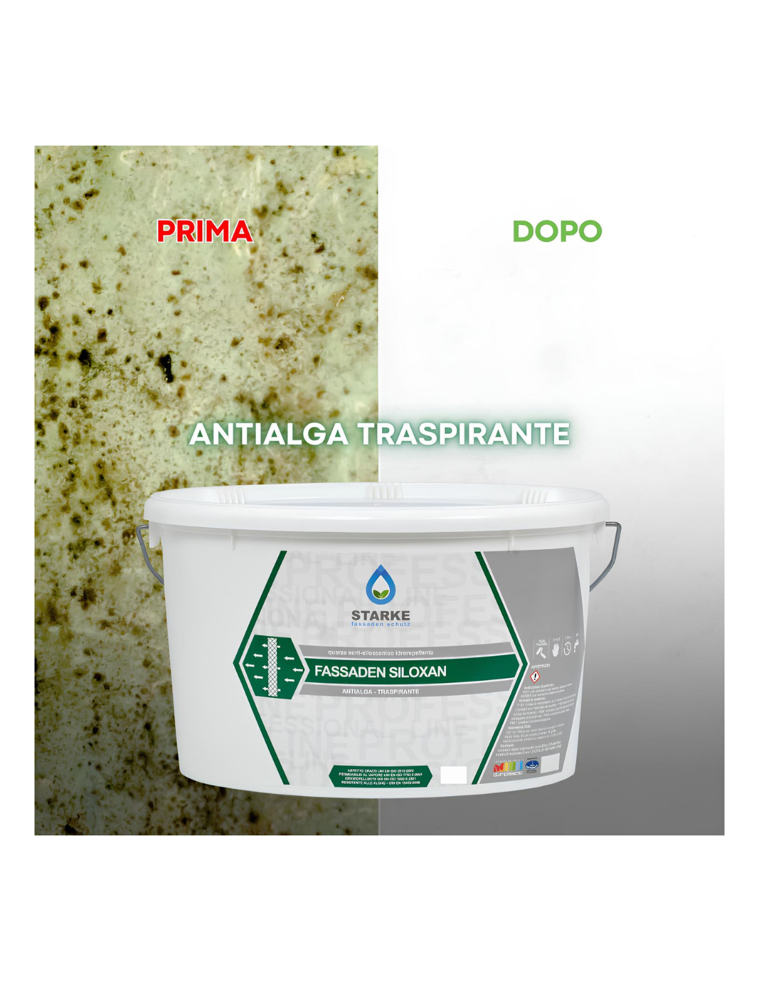 - FUNZIONALITÀ: garantisce elevata protezione traspirante e idrorepellente contro muffe, alghe e umidità su superfici murali esposte e vulnerabili