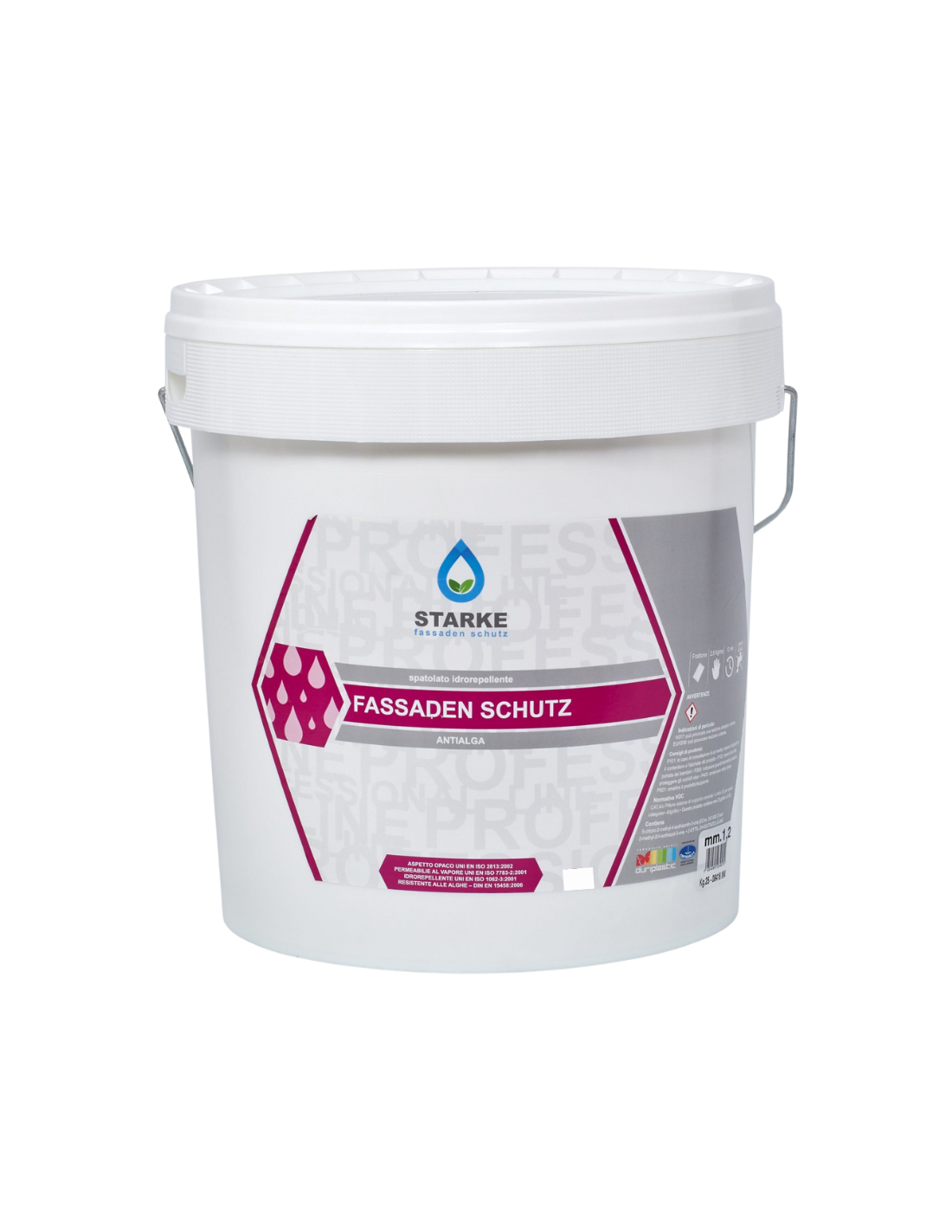 - Fassaden Schutz è a base di resine acril-silossaniche in dispersione acquosa, pigmenti e cariche selezionati, che unisce i vantaggi dei rivestimenti minerali con quelli dei rivestimenti sintetici.