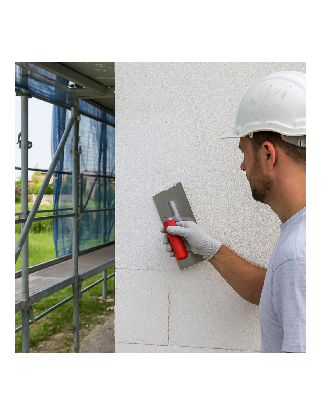 - USO: si applica con frattazzo su intonaci cementizi, base calce, fibrocemento e supporti compatibili preventivamente preparati con un fondo idoneo