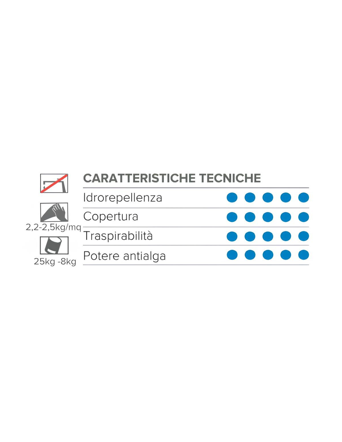traspirante, idrorepellente e antialga per intonaci nuovi o già pitturati