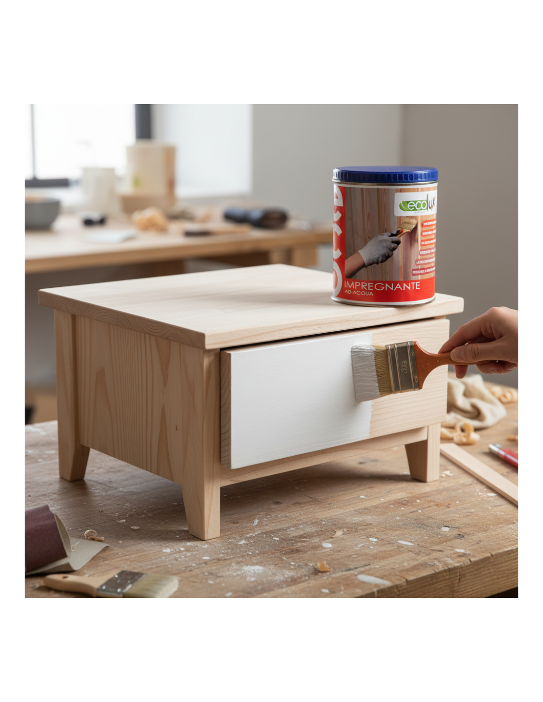 - Lavorazioni artigianali e restauro: adatto anche per cornici decorative, oggetti artistici o complementi d’arredo in legno grezzo che necessitano di una finitura resistente ma dall’aspetto autentico.