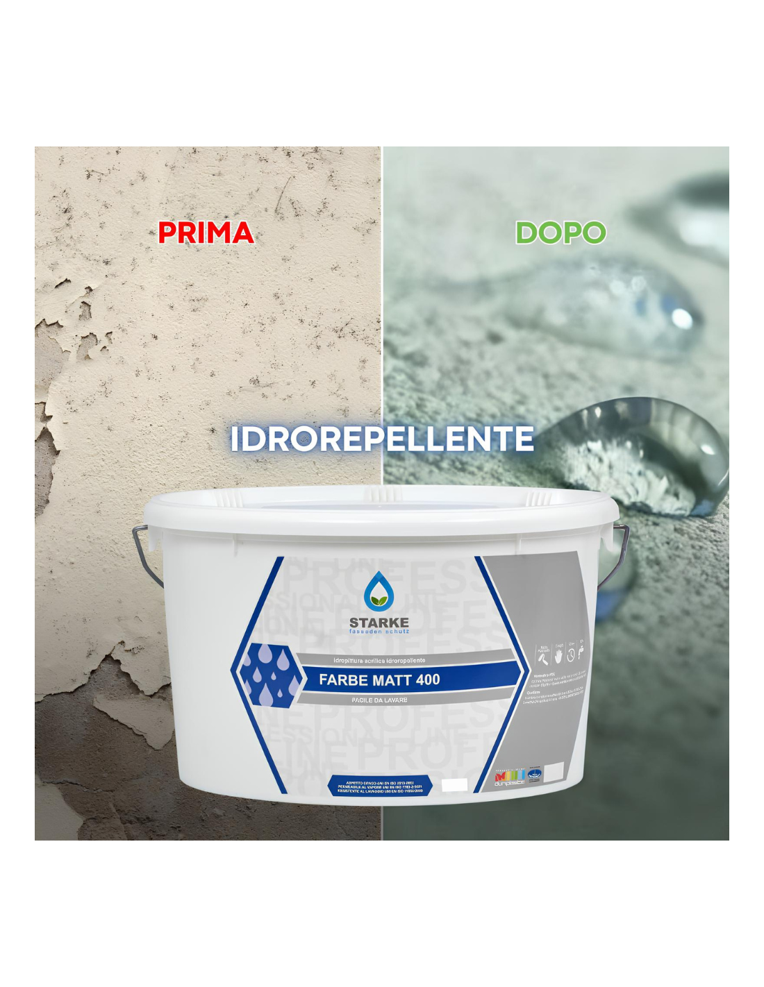 FARBE MATT 400 è un'idropittura permeabile al vapore con moderata idrorepellenza