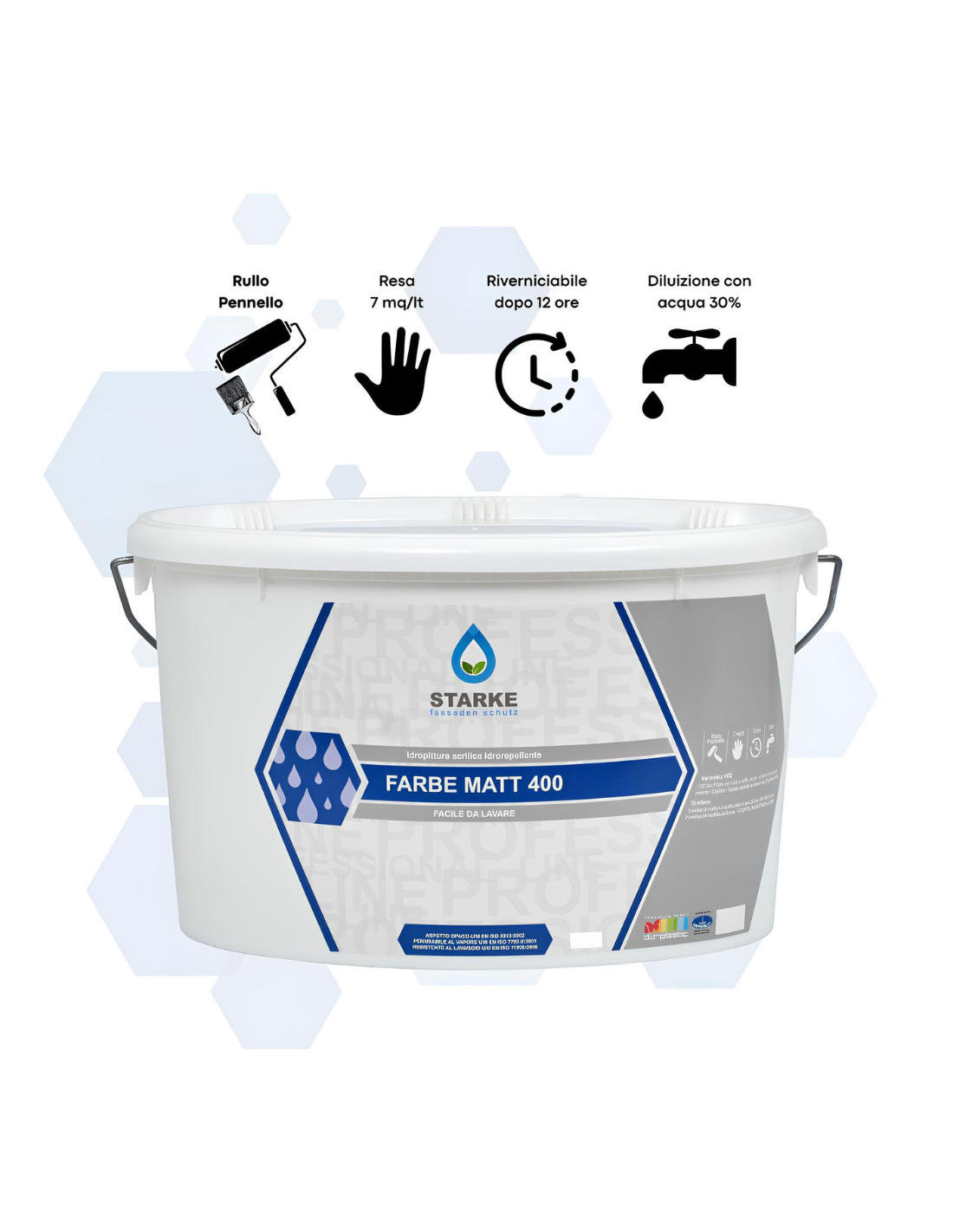 • CONFEZIONE: disponibile in secchi ovali da 5 L o 12,5 L, impilabili, con etichetta chiara, prodotto Made in Italy adatto all’uso professionale