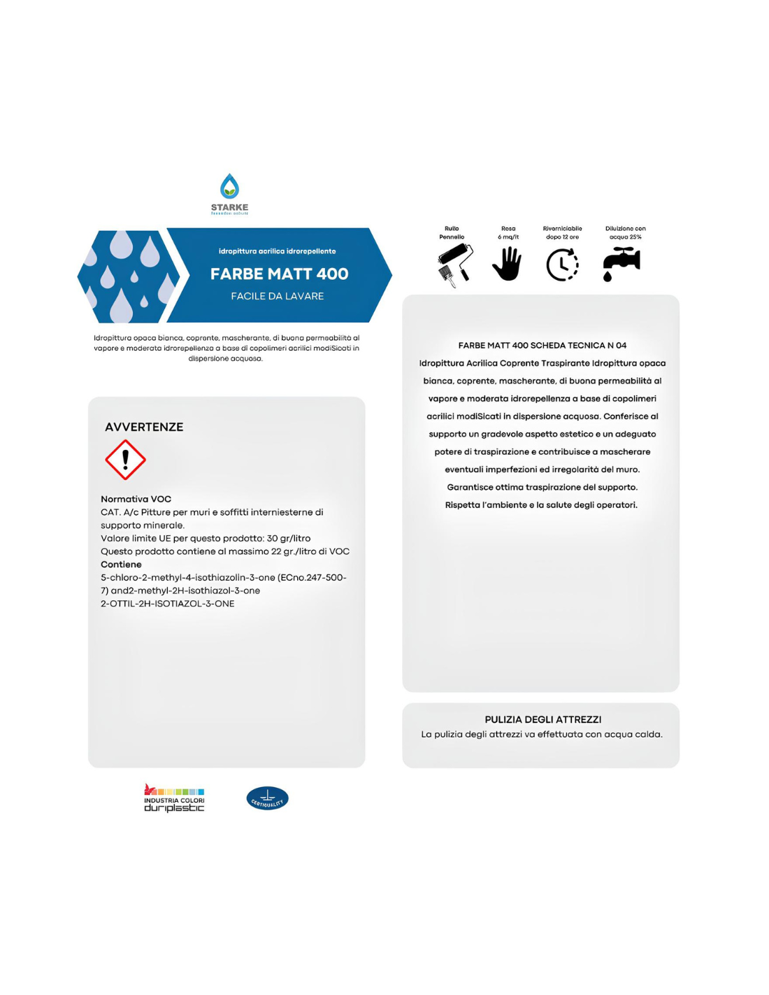 FARBE MATT 400 contiene max 29gr/lt di V.O.C.