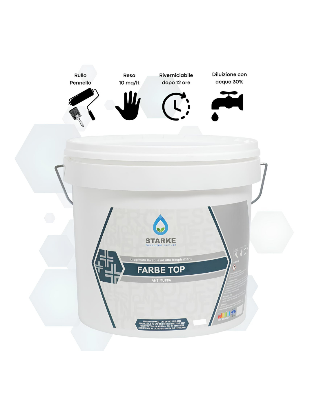 Farbe Top Pittura Murale Superlavabile Igienizzante Antimuffa Ottima Copertura