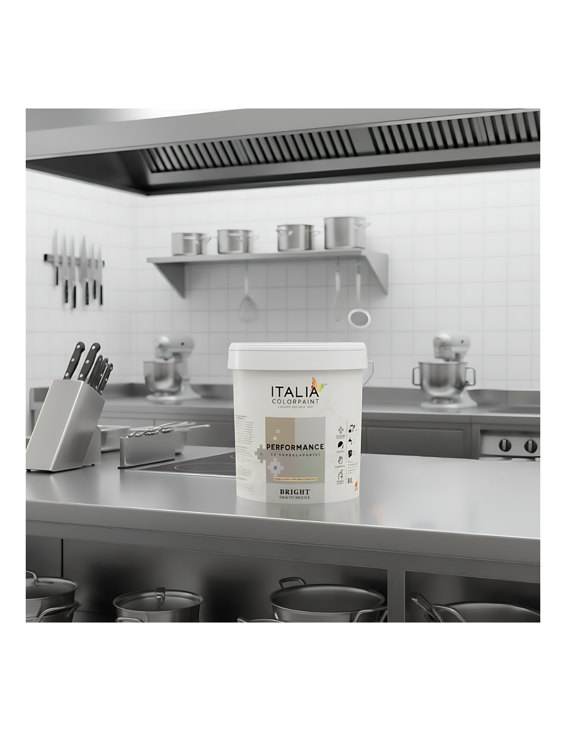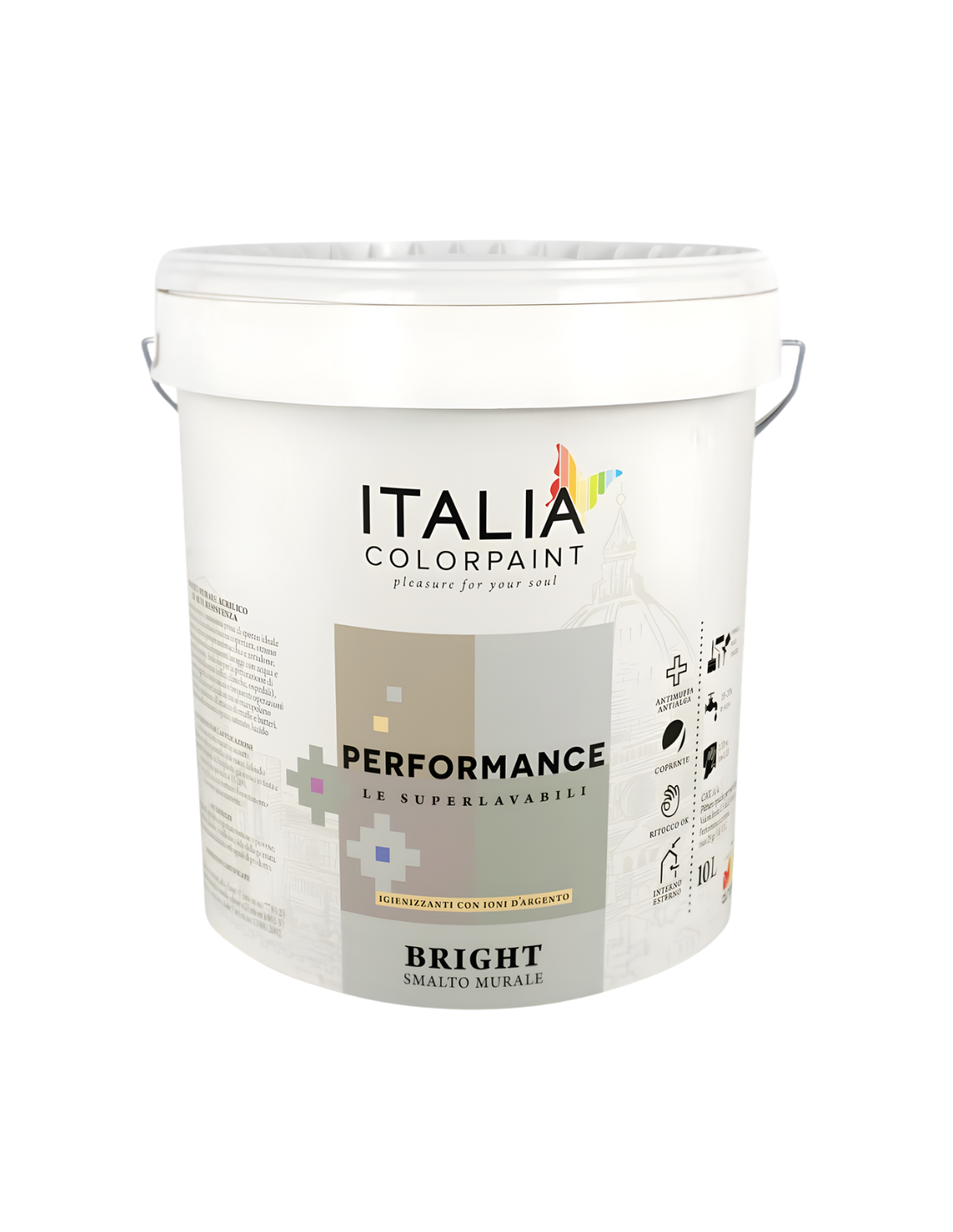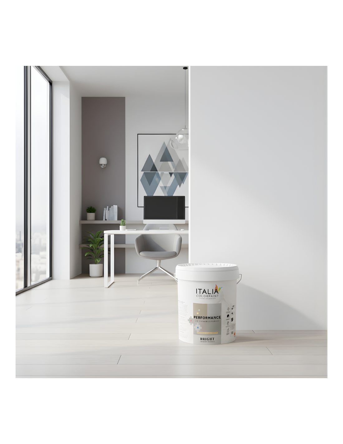 Performance Bright rappresenta uno smalto murale all’acqua di alta qualità, progettato per la verniciatura di superfici sia interne che esterne soggette a forte usura e frequenti pulizie. Questo prodotto si distingue per una formulazione avanzata a base di copolimeri acrilici in dispersione acquosa, arricchita con ioni d’argento, che garantiscono un’azione igienizzante duratura. La tecnologia tixotropica facilita l’applicazione, assicurando una stesura uniforme sia a pennello che a rullo o spruzzo. Performance Bright è disponibile in vari gradi di brillantezza (opaco, satinato e lucido), permettendo così di soddisfare ogni esigenza estetica e funzionale. La sua bassa presa di sporco lo rende ideale per finiture eleganti e sempre pulite.