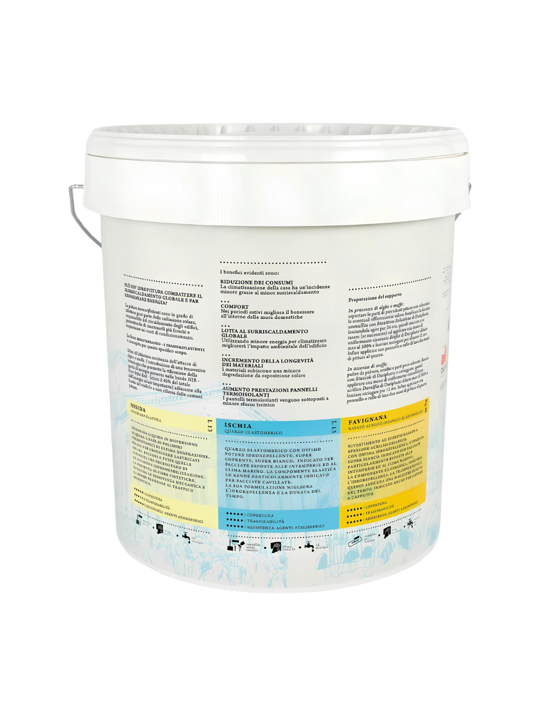 • CARATTERISTICHE: rivestimento rasato acrilsilossanico elastomerico a spessore termoriflettente antialga con finitura super coprente e super bianca