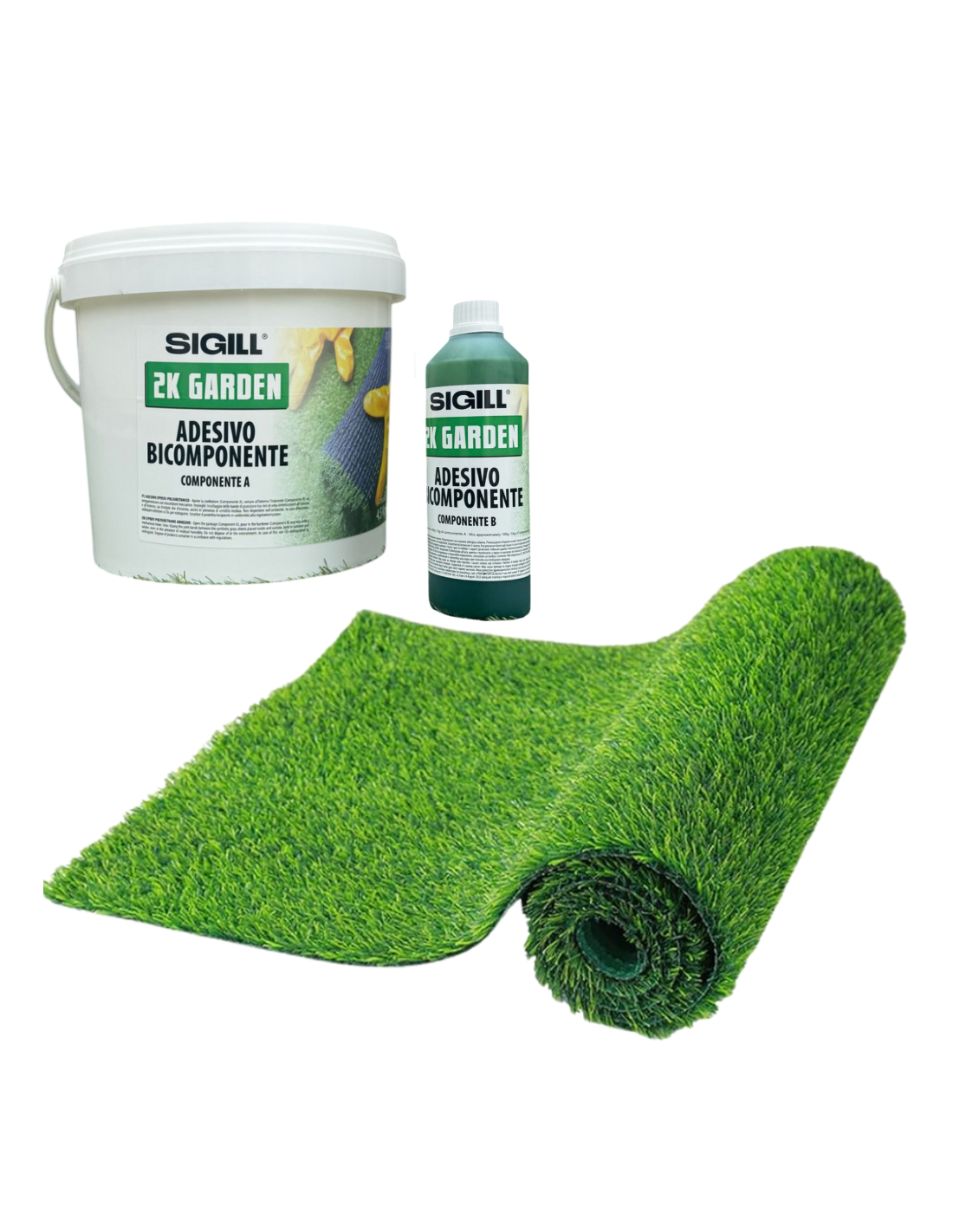 • Adesivo di alta qualità: La formula bicomponente assicura un'adesione perfetta tra il prato sintetico e le superfici, senza distacchi o movimenti, anche in ambienti esterni esposti alle intemperie.