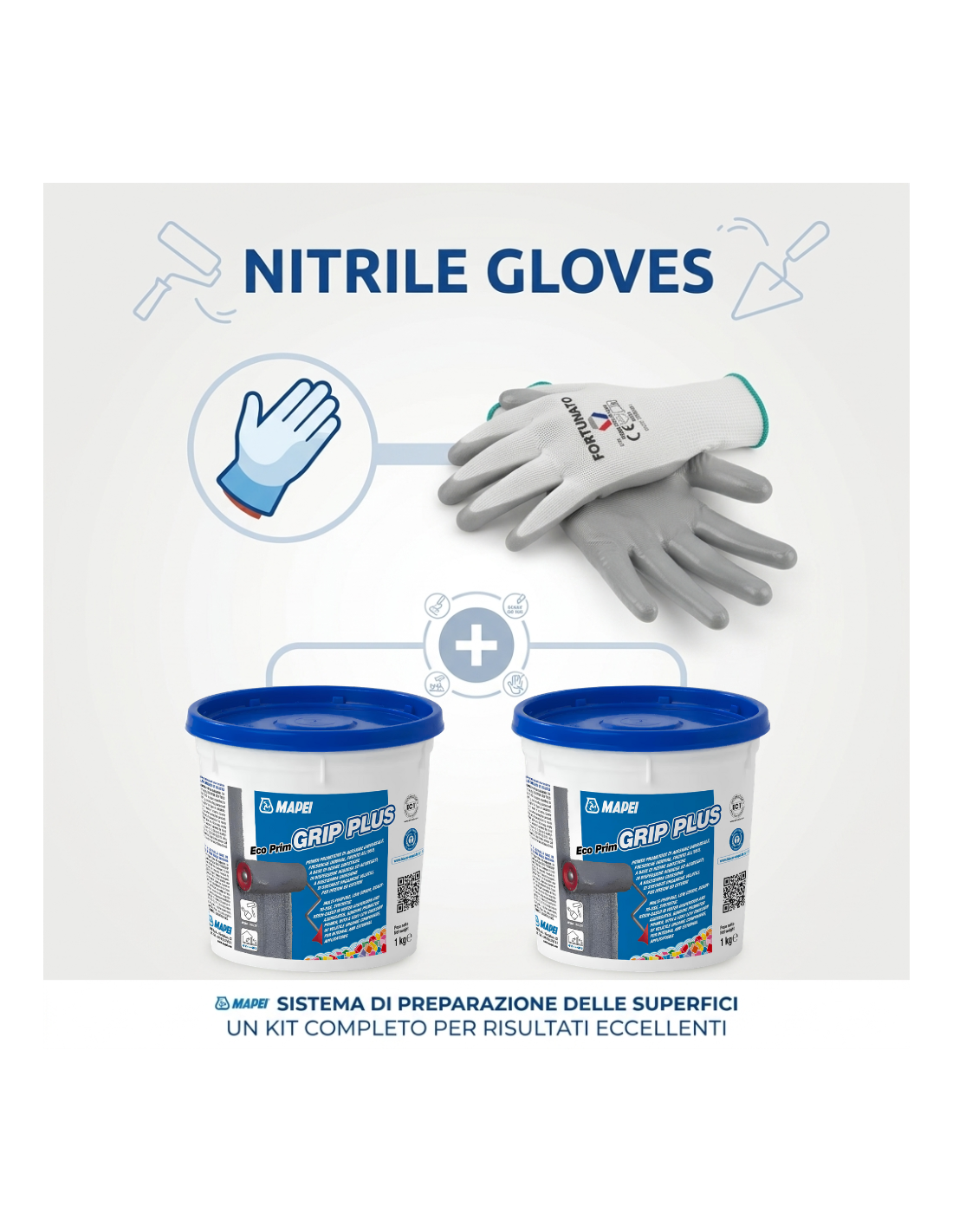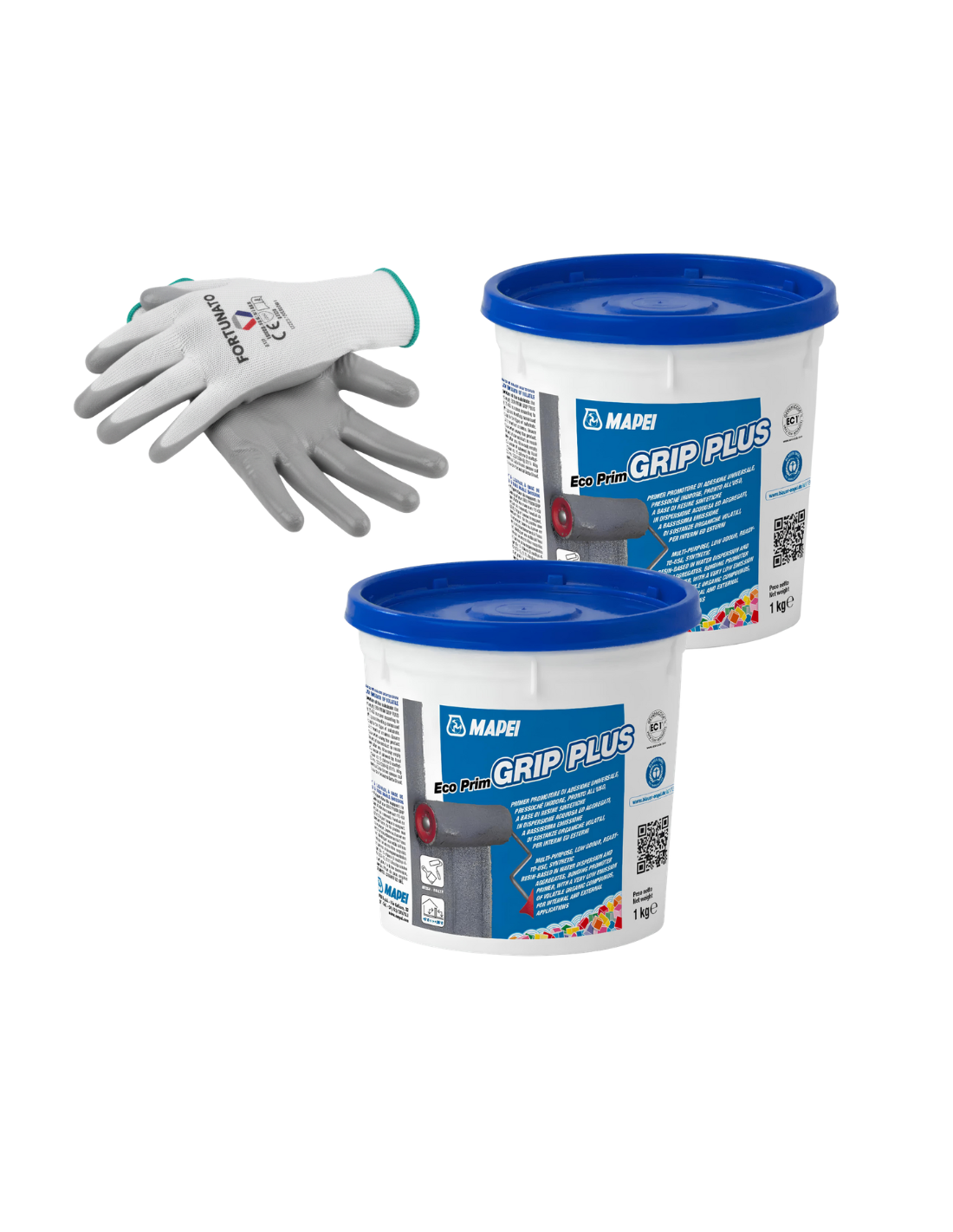 MAPEI Eco Prim Grip Plus Primer Adesione Pareti Pavimenti 2x1kg e Guanti Nitrile