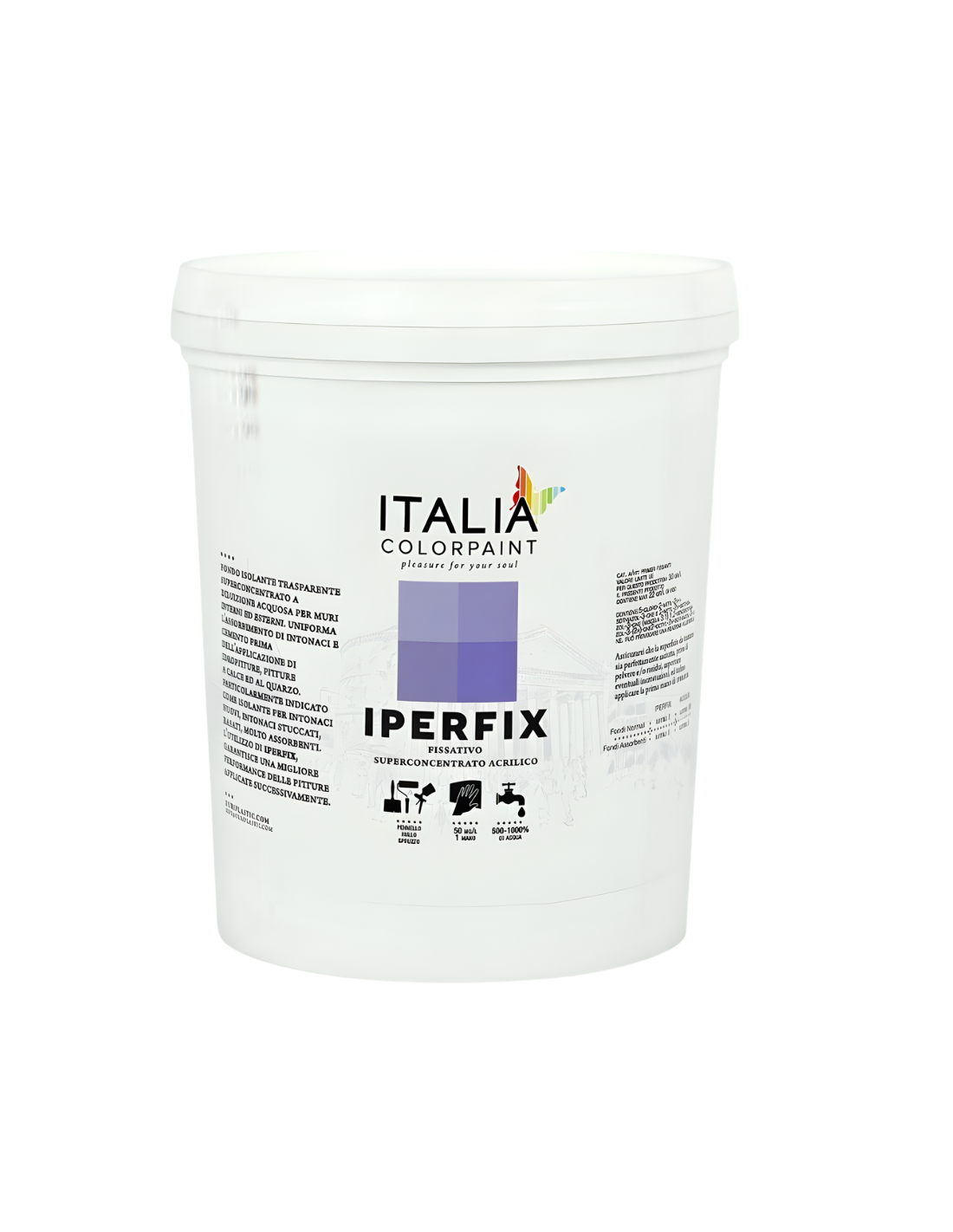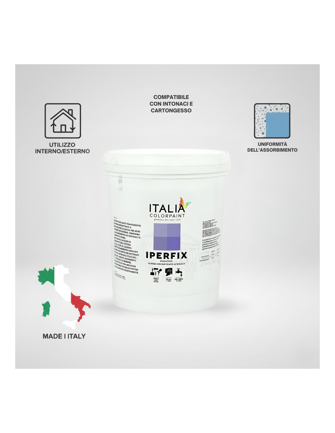 IPERFIX si distingue per la rapida essiccazione al tatto (circa 3 ore a 20°C) e la completa asciugatura in 24 ore. È studiato per assicurare una perfetta adesione delle successive finiture pittoriche o decorative, migliorando la durata delle applicazioni successive. Il fissativo penetra in profondità nei supporti minerali, consolidandoli e riducendo sensibilmente l’assorbimento superficiale. L’effetto idrorepellente protegge efficacemente da pioggia battente, umidità ambientale e sporco atmosferico.