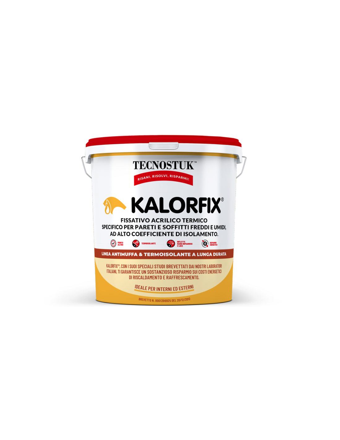 Kalorfix è una soluzione innovativa concepita per migliorare l’efficienza termica degli ambienti, proteggendo superfici verticali e orizzontali da umidità, muffe e sbalzi termici. Questo fissativo acrilico termico, sviluppato e prodotto in Italia, utilizza una tecnologia a base di particelle a nano-reticolo che consente di creare una barriera protettiva e isolante sulla superficie applicata. Grazie alla sua formulazione pronta all’uso, Kalorfix si distingue per semplicità di impiego ed efficacia sia in contesti residenziali sia professionali. È idoneo all’impiego su pareti interne ed esterne, soffitti di edifici civili o industriali, locali tecnici, garage, cantine, spazi soggetti a condense o escursioni termiche.