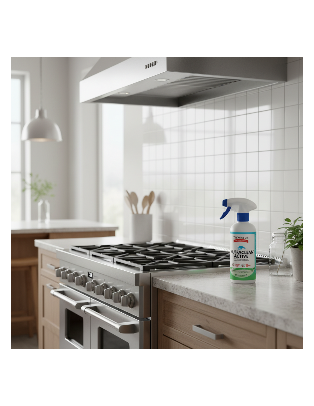• Muffaclean Active richiede risciacquo? Generalmente no; dopo l’asciugatura basta passare un panno umido per eliminare i residui. Il risciacquo può essere necessario solo in presenza di successive lavorazioni particolari consigliate dal produttore.